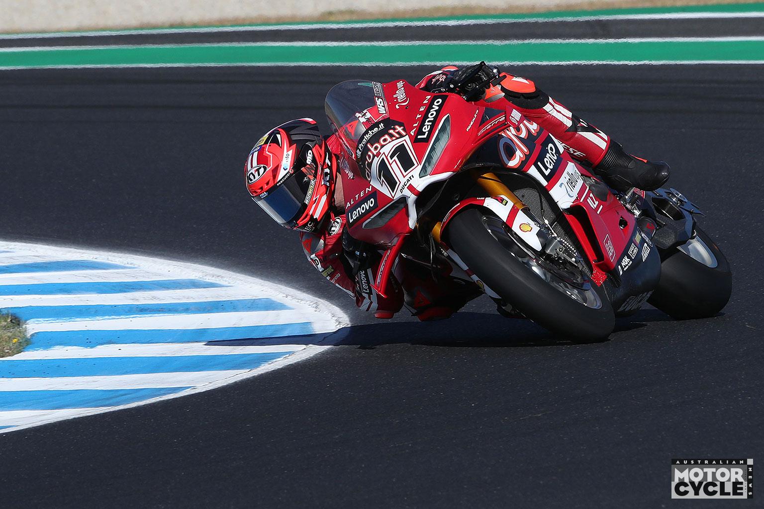 Ducati’s new Panigale V4 R tops the first practice day as Turn 6 claims two early spills