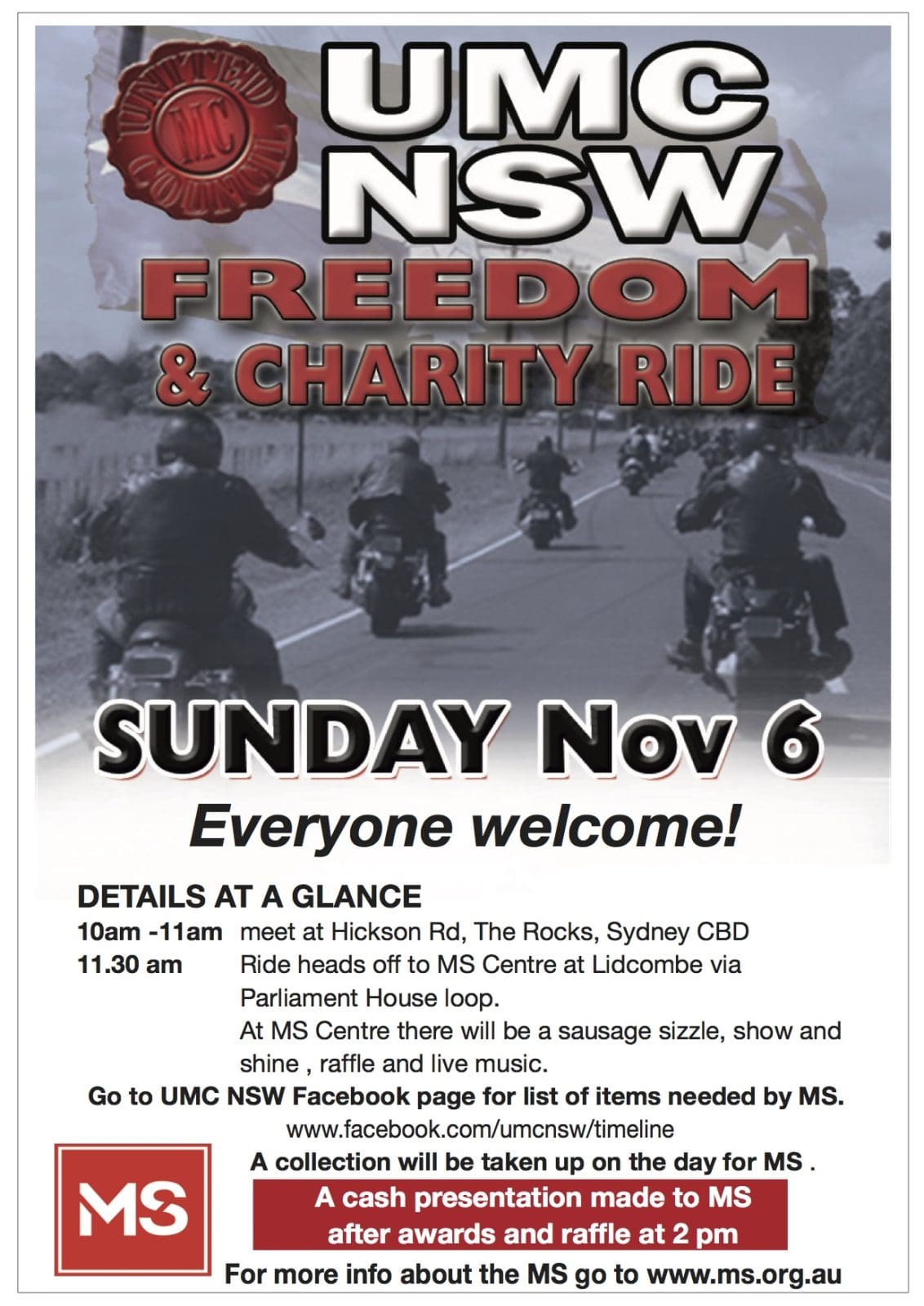 Meeting from 10 am-11am in Hickson Road The Rocks,in Sydney’s CBD,the ride will head out after speeches and media to the MS Residential Centre at Lidcombe to present a collection…