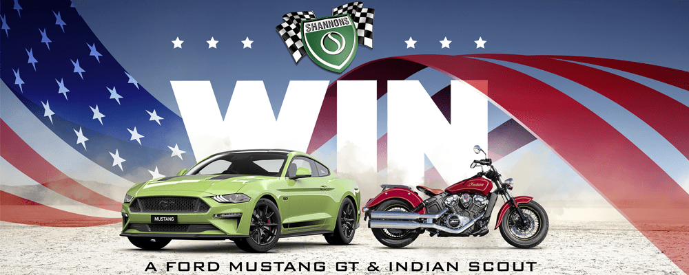 Shannons are giving motoring enthusiasts the chance to win the ultimate all American drive and ride prize – an iconic Ford Mustang GT V8 Fastback and a limited-edition Indian Scout…