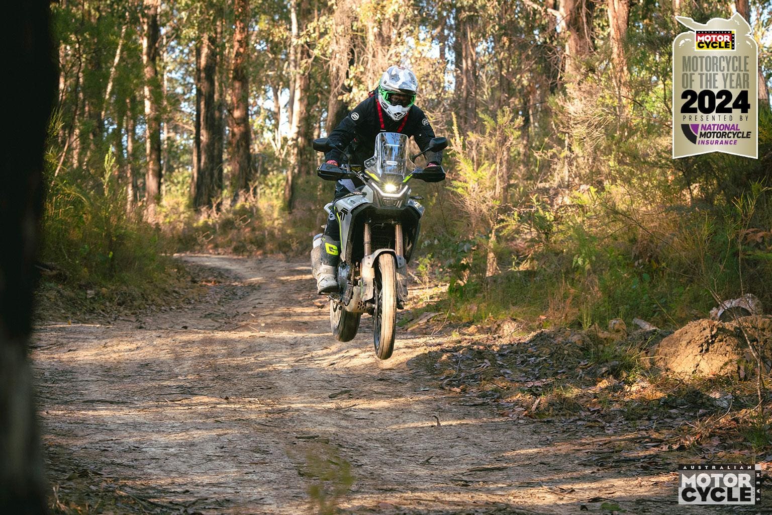 The other challenger was CFMoto’s 450MT, its first enduro-tourer. It so impressed our Finke desert racer tester that we had to include it in our MOTY. The 450MT scored strongly but was compromised in the numbers game by having a modest level of technology to keep the price down.