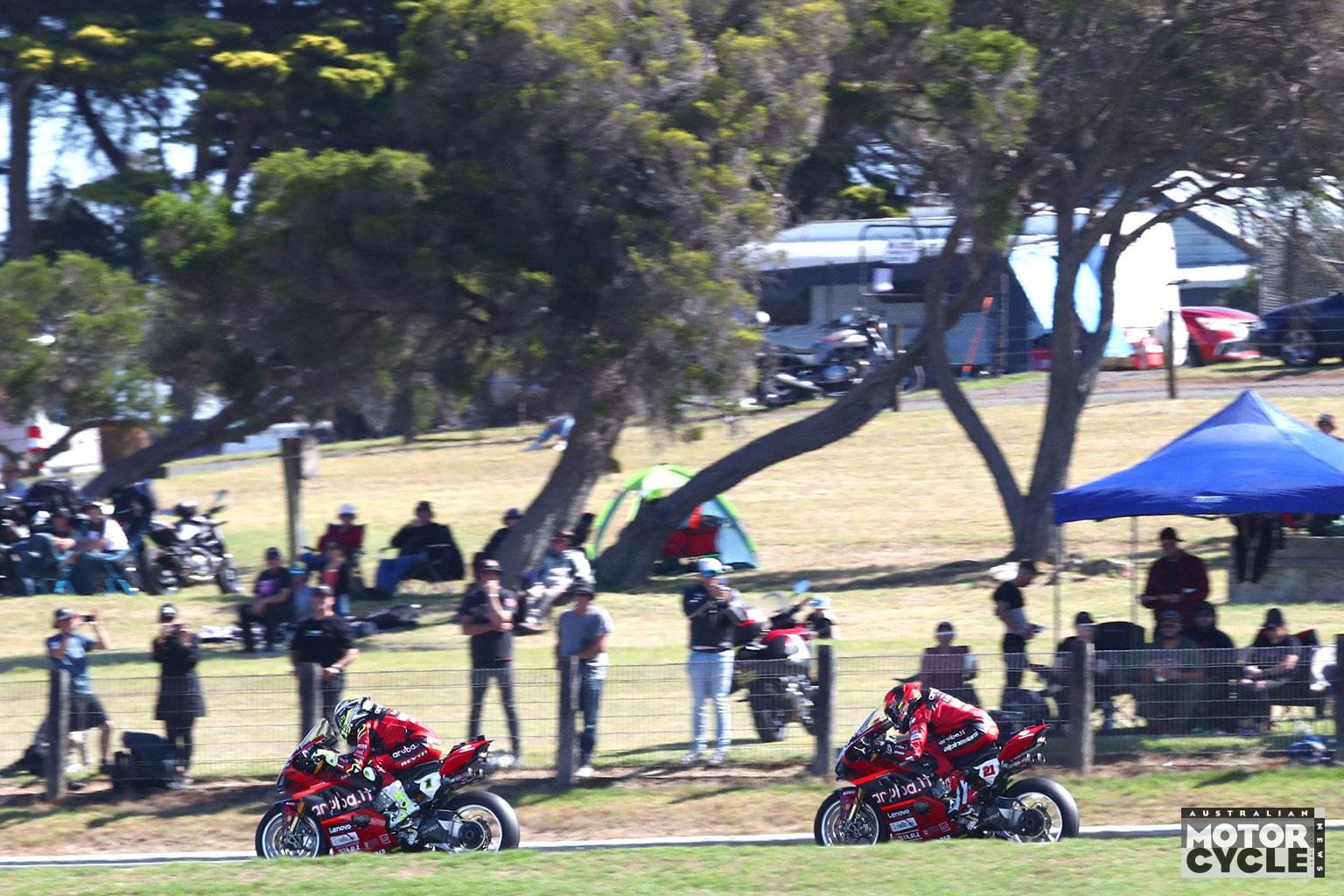 Camping has been part of the Phillip Island landscape since, well, Donna Gardner ran down the straight in her high-heels to congratulate Wayne on his maiden Aussie Grand Prix victory. For every GP and WorldSBK since, the Phillip Island campground has been a rite of passage for many – albeit more strictly controlled and monitored these days than the laidback expanse of fun and tomfoolery it once was. There are bikes-only areas as well as areas where you can get your car into to unpack and pack-up. Visit www.worldsbk.com.au/get-tickets/campground-packages/ for answers to all your common camping questions, and to book.