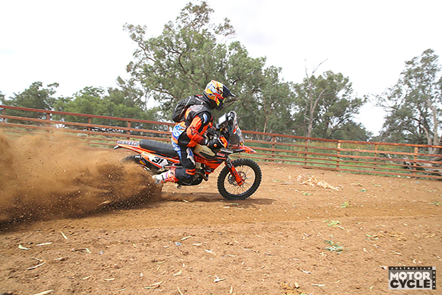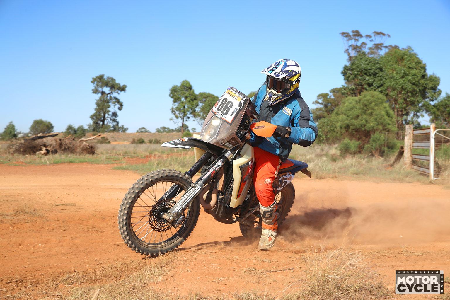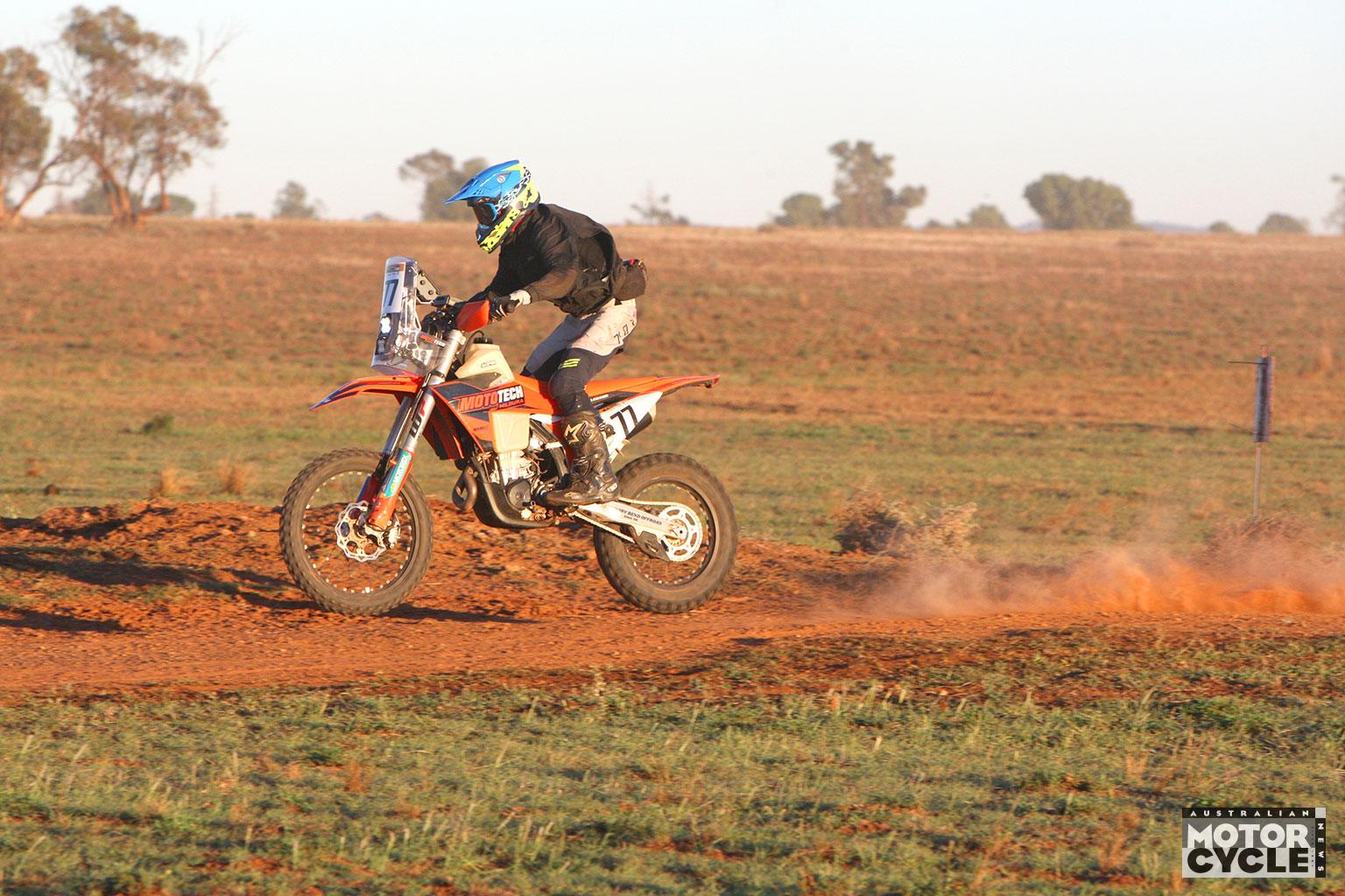Cold winds howled across the open paddocks during the Friday prologue, helping to keep the track mostly dust free as 43 riders hit the 32km course to set the start order for Day 1 racing on Saturday. Young local Honda rider Jesse Broad set the fastest time and would lead out the next morning with bikes starting at one-minute intervals.