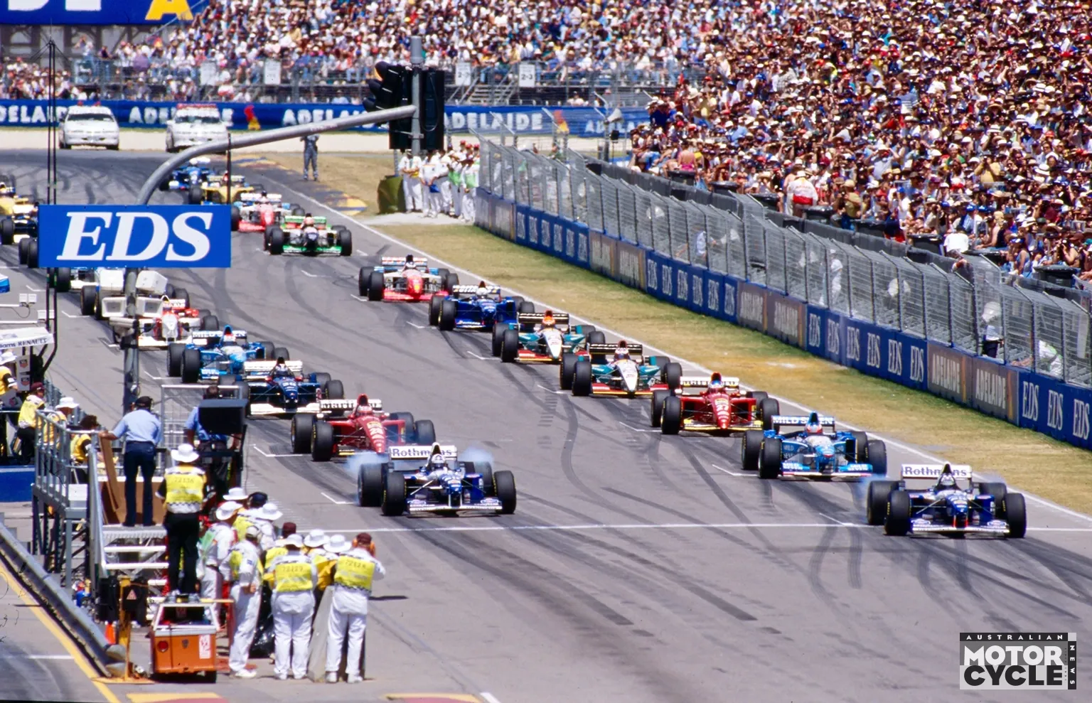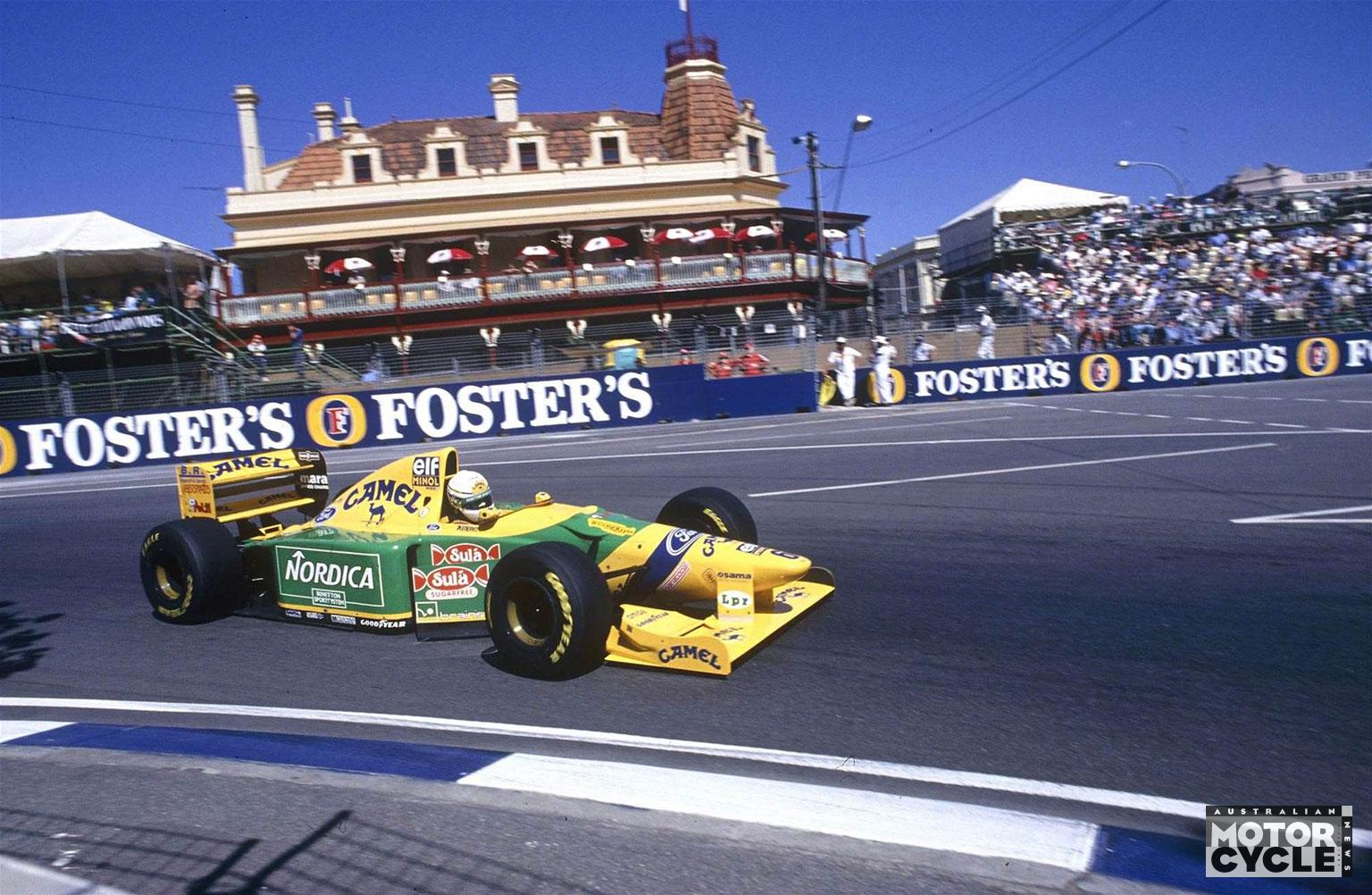Adelaide’s original F1 car circuit of 1985-95 went from concept to development in less than a year. Its 3.78km layout used existing streets plus a section constructed within the parklands that included the pits and start-finish straight. It was cut back to 3.22km, mainly by chopping parts off around the Stag Hotel section, when the Supercars were brought to it for the first time in 1999.