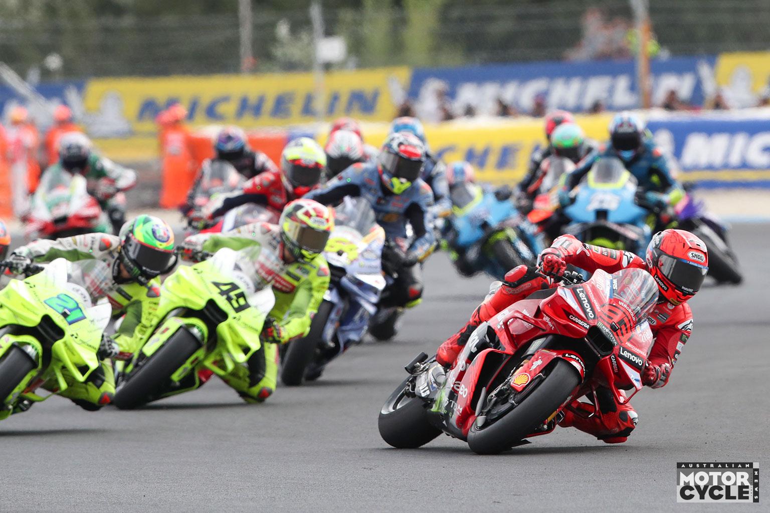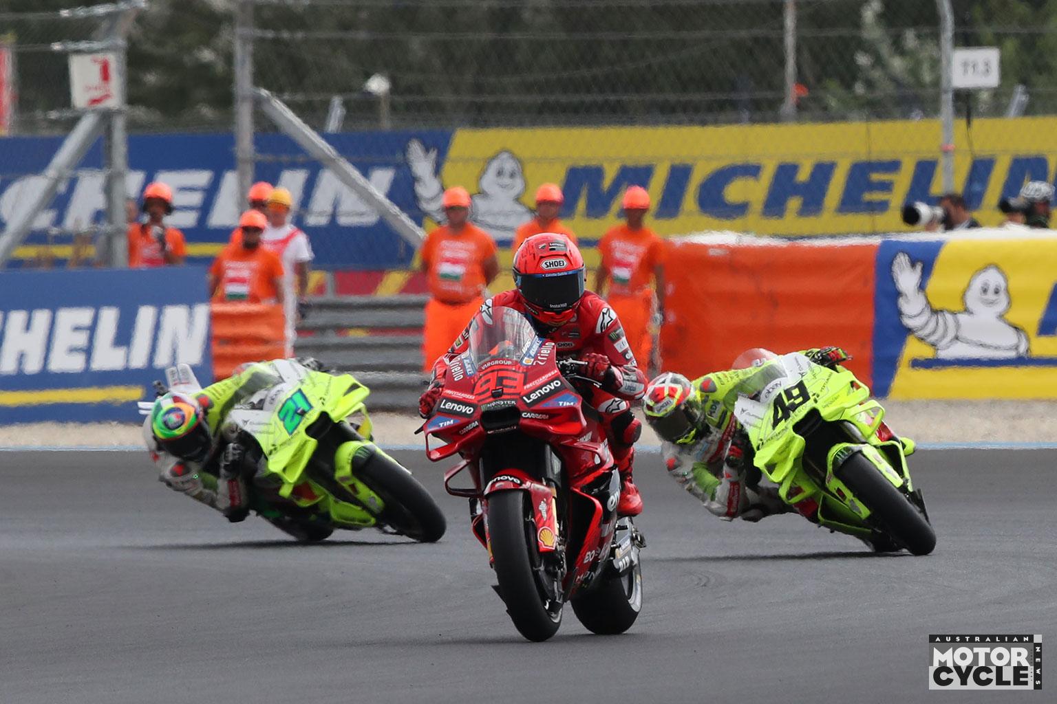 Marquez launched perfectly from pole and seized the initiative, but was only just missed by an out-of-control Fabio Quartararo, who charged into Turn 1 too hot and fell. Enea Bastianini was forced off the track in the mayhem, while Marco Bezzecchi was also pushed wide and shuffled to eighth. As Bastianini tried to claw back positions, he clipped the rear of Zarco and went down, derailing KTM’s hopes early with Acosta also being badly baulked.