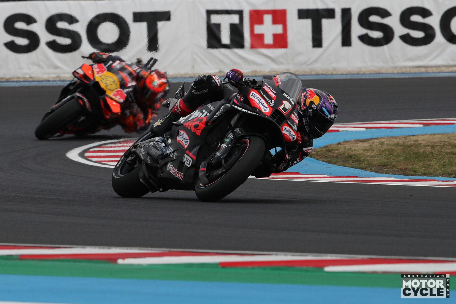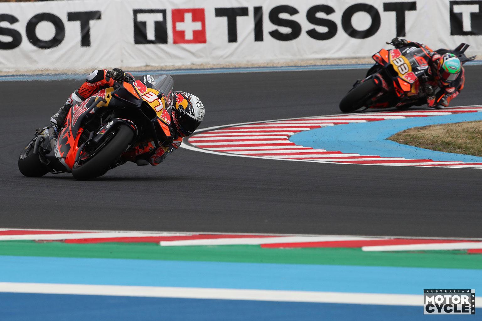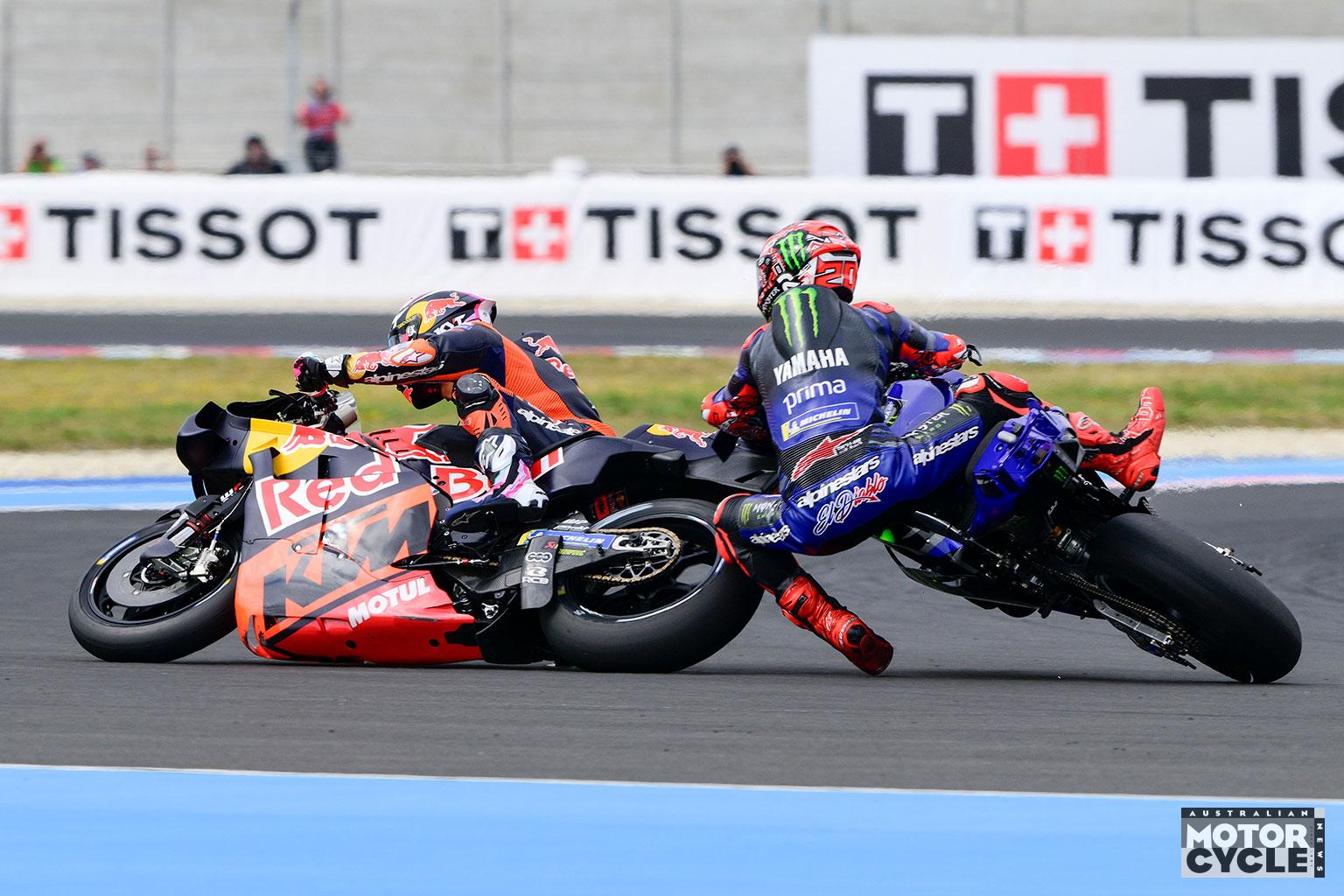KTM’s day worsened when pre-race favorite Pedro Acosta then lost the front while trying to pass Jorge Martin for 10th on Lap 6, his third tumble of the weekend. Brad Binder’s race also unraveled after contact forced him into the pits for repairs, completing a nightmare Sprint for the orange bikes.