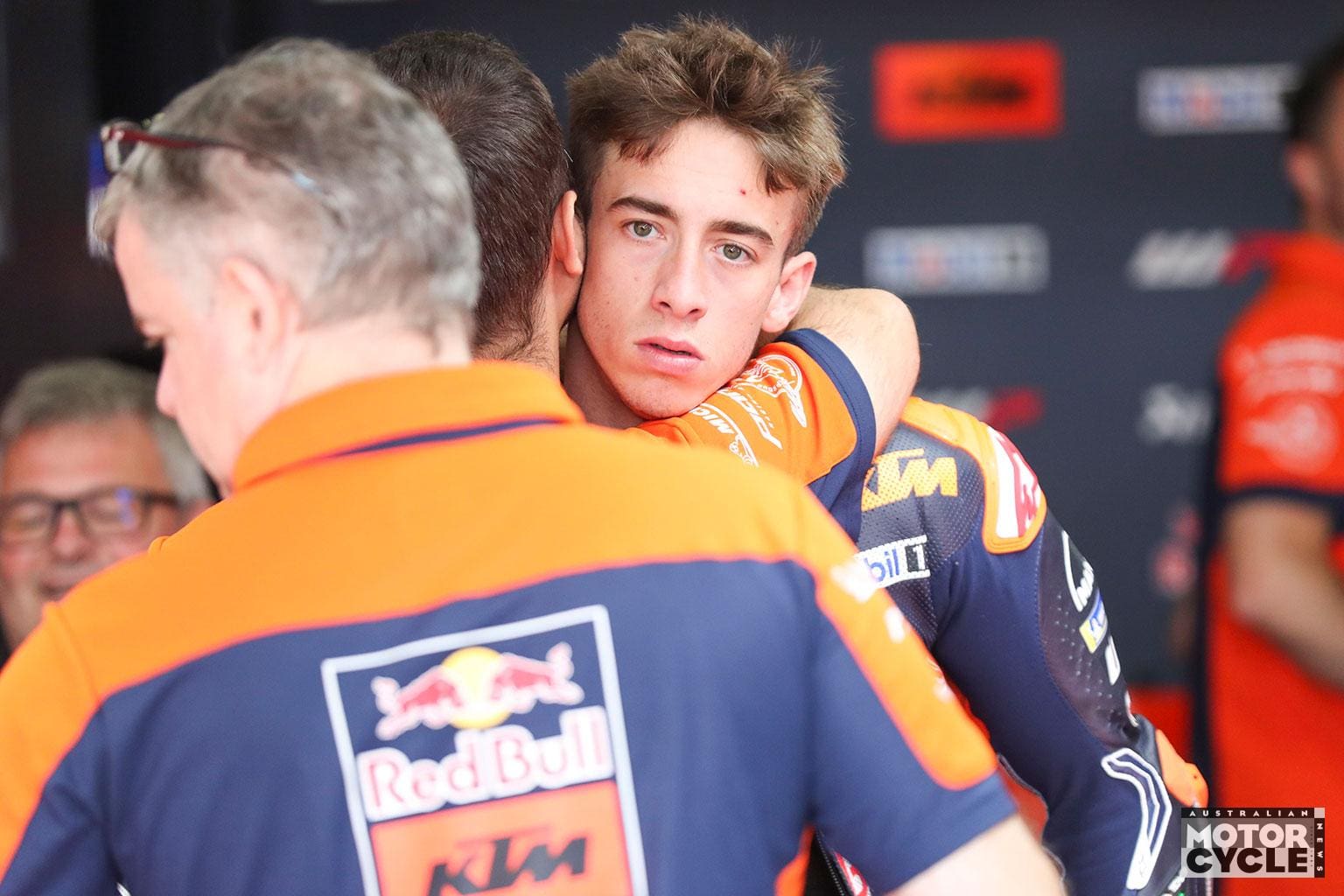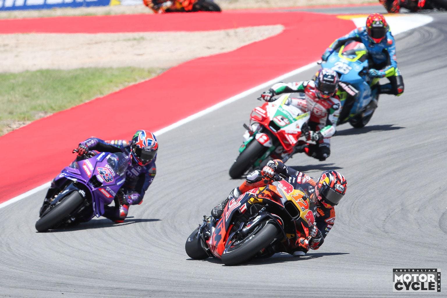 Despite the low grip suiting the RC16 (“It’s not our level went up, the other’s went down,” according to Acosta), the KTMs just couldn’t keep up. Binder’s potential to score a season’s best came apart on lap 12 as he tucked the front at Turn 3. “I was slower, with less lean angle than normal,” he shrugged after. That left Acosta free for fourth, equalling his best result of the season. Not that it pleased him. “I was five seconds behind Pecco and seven seconds from the winner – why should I be happy?” he asked.
