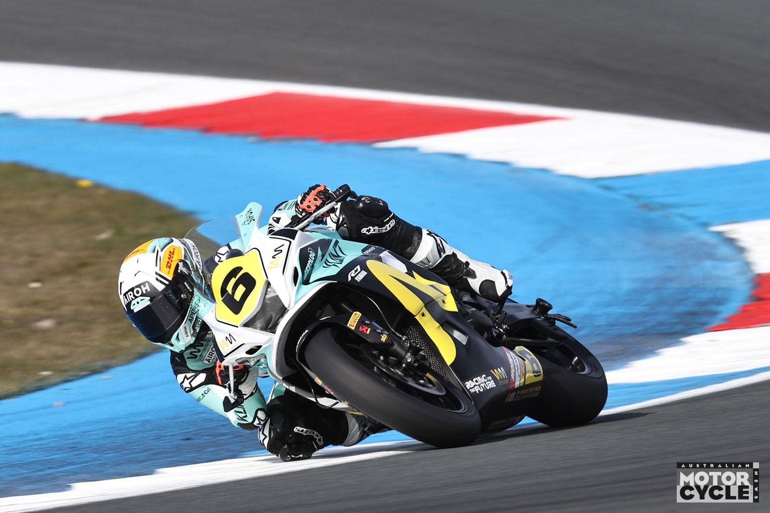 Carter was a front-runner all weekend – first in Superpole where he was fourth fastest then he went sixth in each 12-lap race. He said afterwards, “I felt pretty positive all weekend and had a good feeling from the start. I only had to make a few small changes through the weekend. In the races I had good pace but in the last couple of laps, in both races, I was a bit unfortunate because of contacts with other riders.”