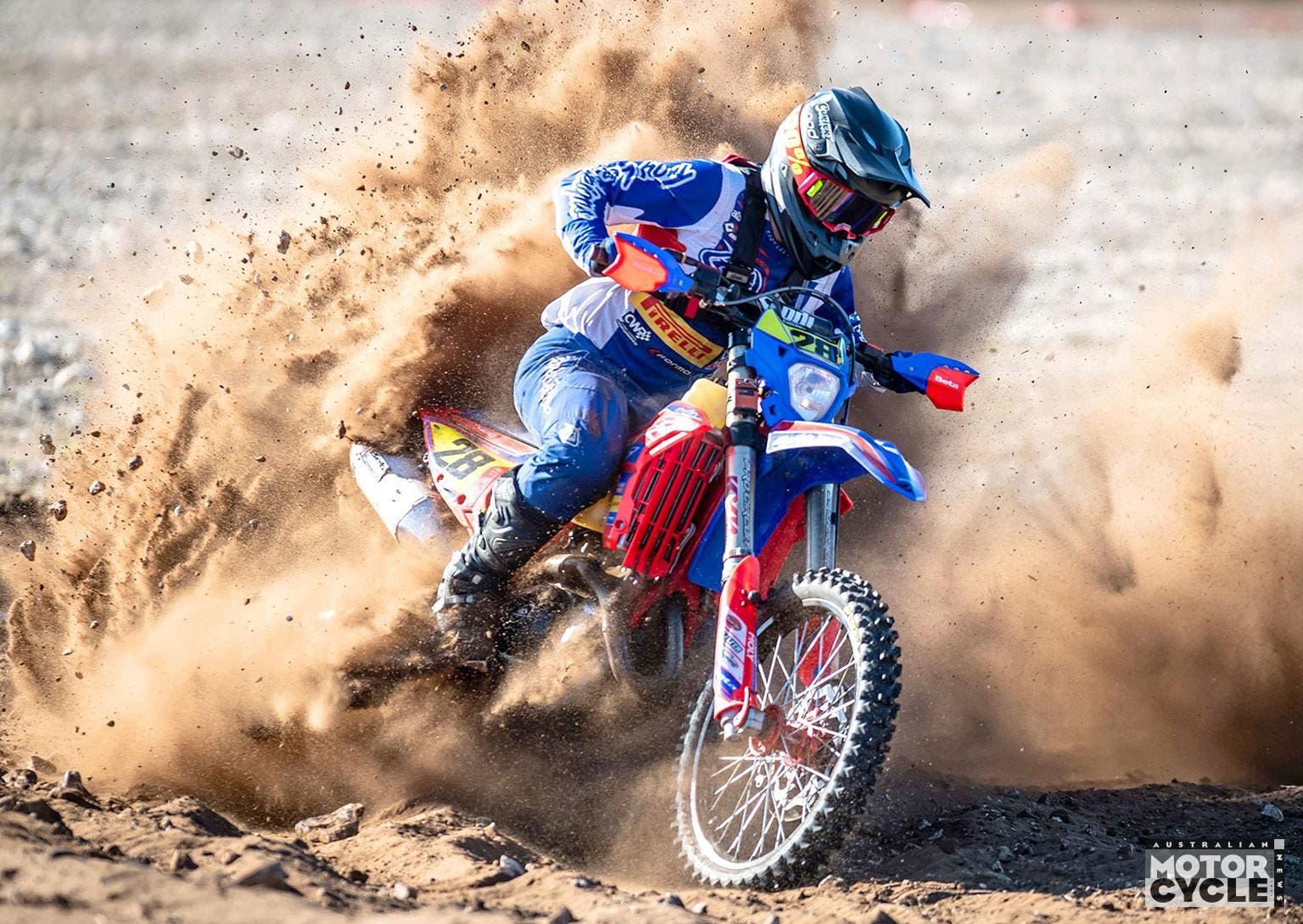 Track conditions proved just as challenging for Sunday’s sprints. However, Jye Dickson – whose previous best was a podium in Round 4 – had figured out the quickest way to slide through the silica sand, winning the first sprint by four seconds, then winning four more before the day was done. It was his (and Beta’s) first overall enduro victory in Australia. Milner won a single sprint to finish second overall for the day, with Dickson’s Beta teammate Andrew Wilksh filling the podium. Suffering badly blistered hands, Ruprecht couldn’t quite master the shifting sands, failing to crack the top 10 in any of the six sprints.