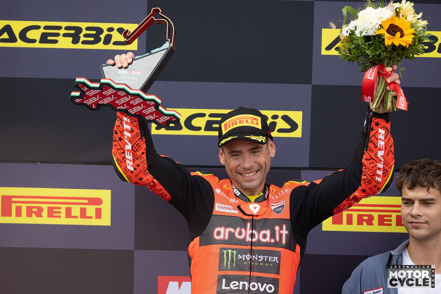 Bautista celebrates Race 1 podium at the Hungarian round