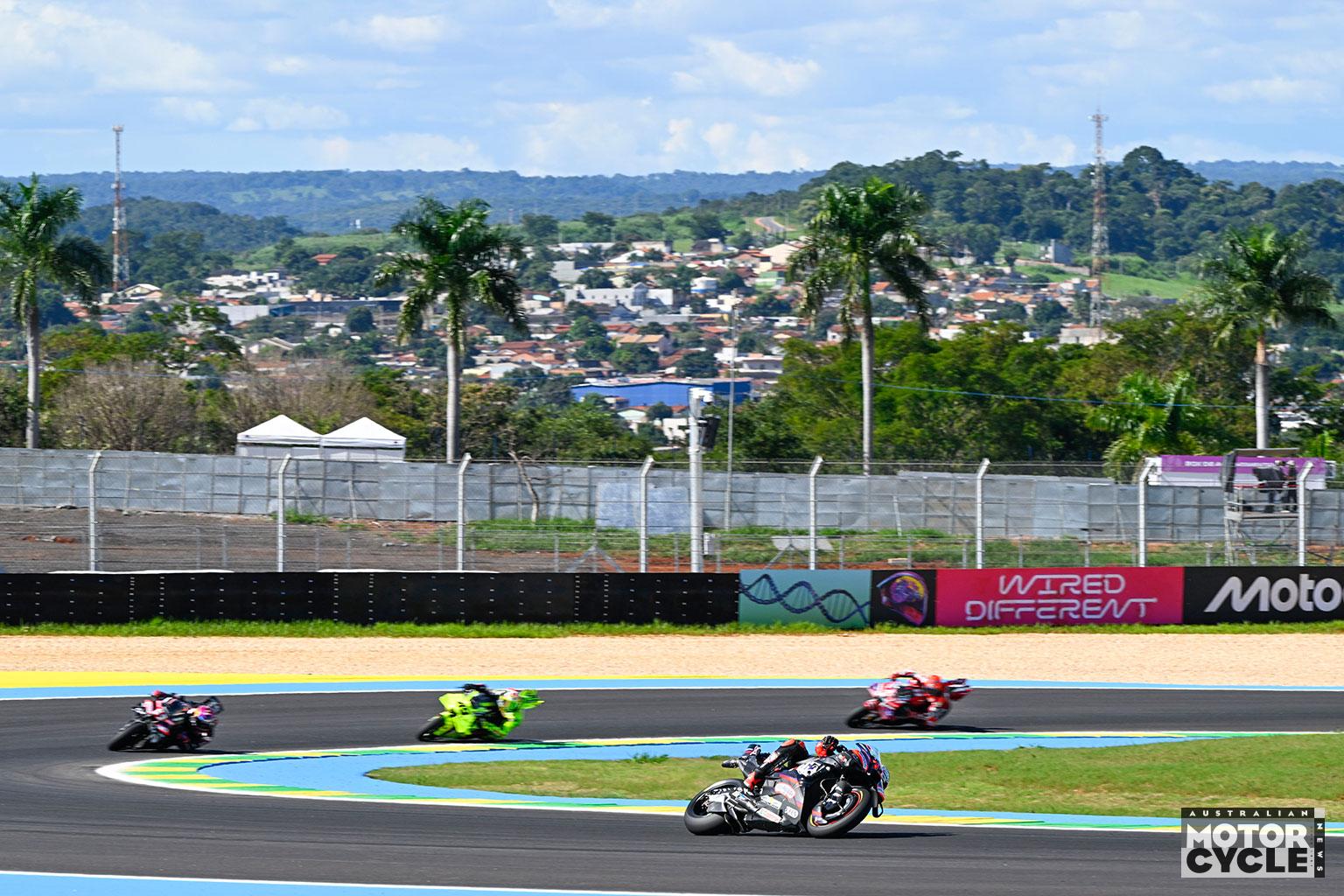 In brutally hot, humid conditions, the Brazilian Grand Prix was cut back to 23 laps due to track degradation, despite a huge effort by organisers to repair the circuit after heavy rain created a sinkhole on the main straight yesterday. That made the race shorter than eother the Moto3 or Moto2 races held earlier in the day and caused consternation on the grid, as teams are not allowed to change tyres before the start.