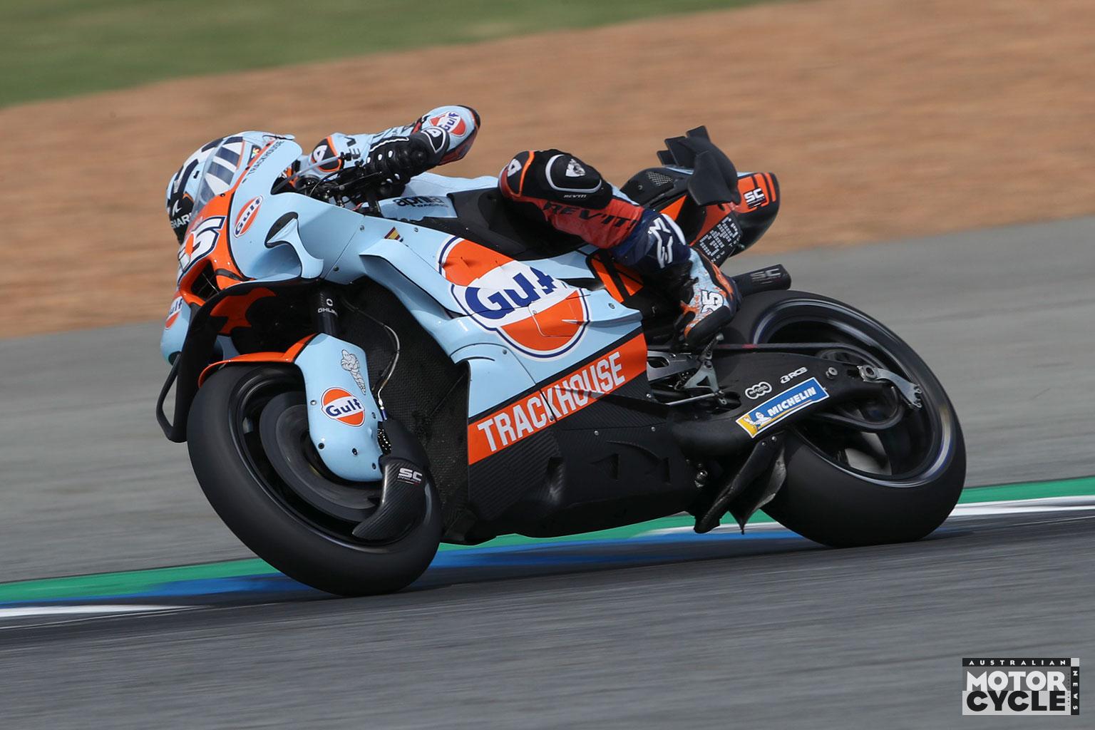 Behind the front two, Raul Fernandez secured third with 1’28.876 ahead of Di Giannantonio fourth (1’28.918) and Jorge Martin fifth (1’29.001). Pedro Acosta took sixth (1’29.061) from Alex Marquez seventh (1’29.077), Ai Ogura eighth (1’29.211), Morbidelli ninth (1’29.321) and Joan Mir completing the top 10 in tenth (1’29.385).