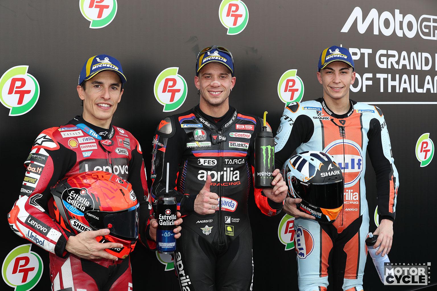 Aprilia shines in Thailand as Marquez misses out by 0.035s and Bagnaia fails to escape Q1