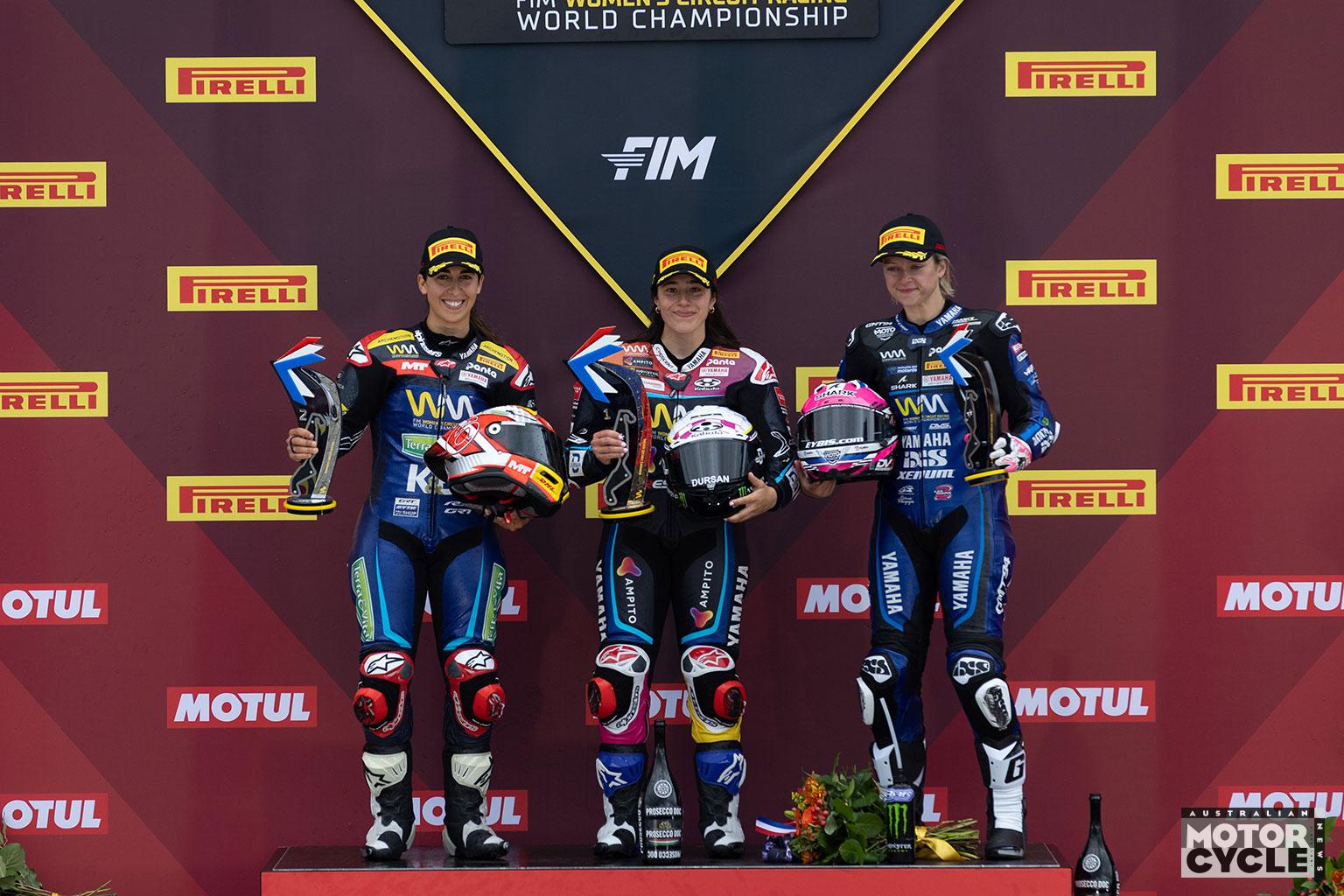 Fifth was new rider in the class this year, Muklada Sarapuech (EEST NUT Racing) with Chloe Jones (Monster Energy Crescent) sixth, Yvonne Cerpa (MotosCerpa-Gradara Corse) seventh and the battling Tayla Relph (Full Throttle Racing) eight, despite her heavy Race One crash on Saturday.