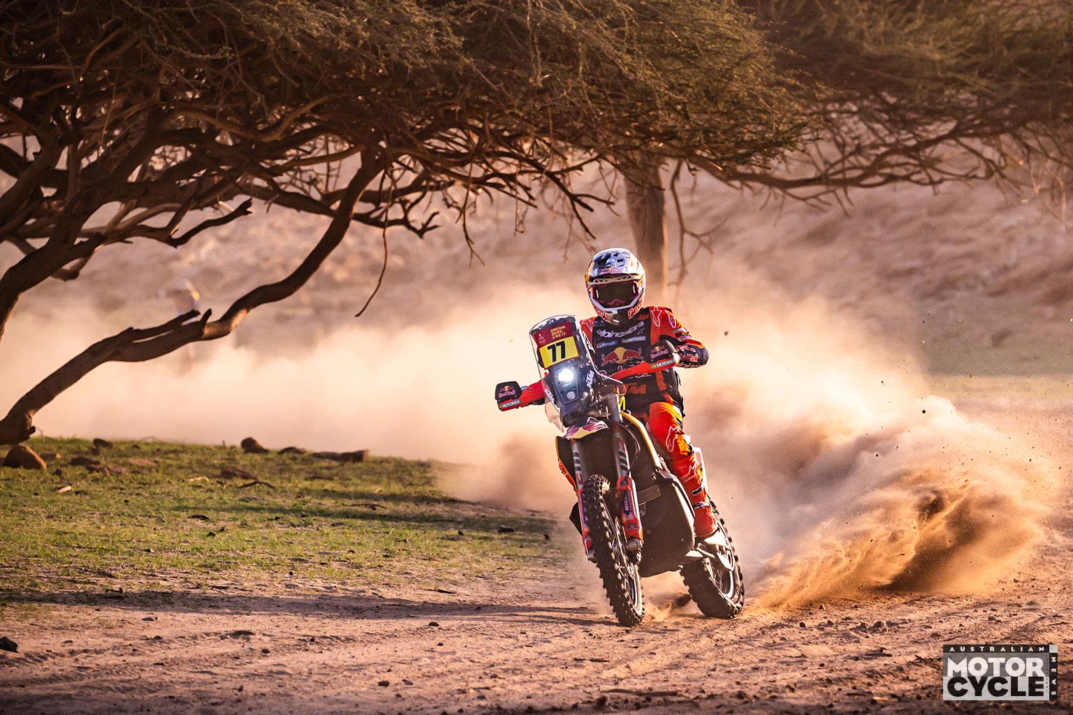 Sanders followed up his second-place prologue performance with another runner-up result on stage one. Riding in the dust of fellow KTM racer Canet for the entire stage, the reigning Dakar Champion did exactly what was necessary to stay in touch with the Spaniard. For stage two, the situation will be the same, with Sanders chasing down his teammate at the front of the field.