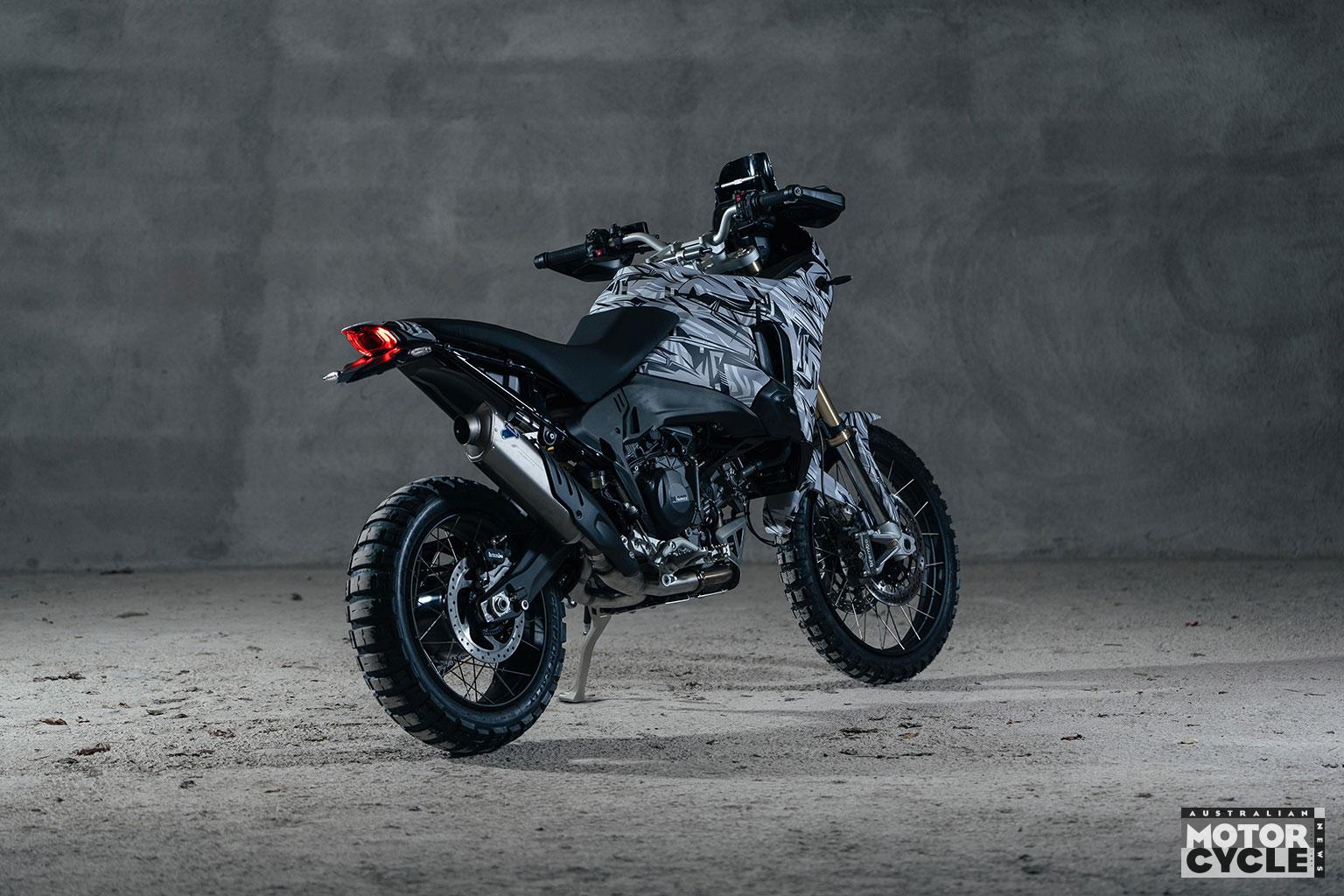 In the DesertX V2, the 890cc engine will be in a 110hp tune, and as on other models with the motor it acts as a structural chassis component, helping reduce weight. With a 21-inch front and 18-inch rear wheel, the DesertX V2 retains some genuine offroad potential.