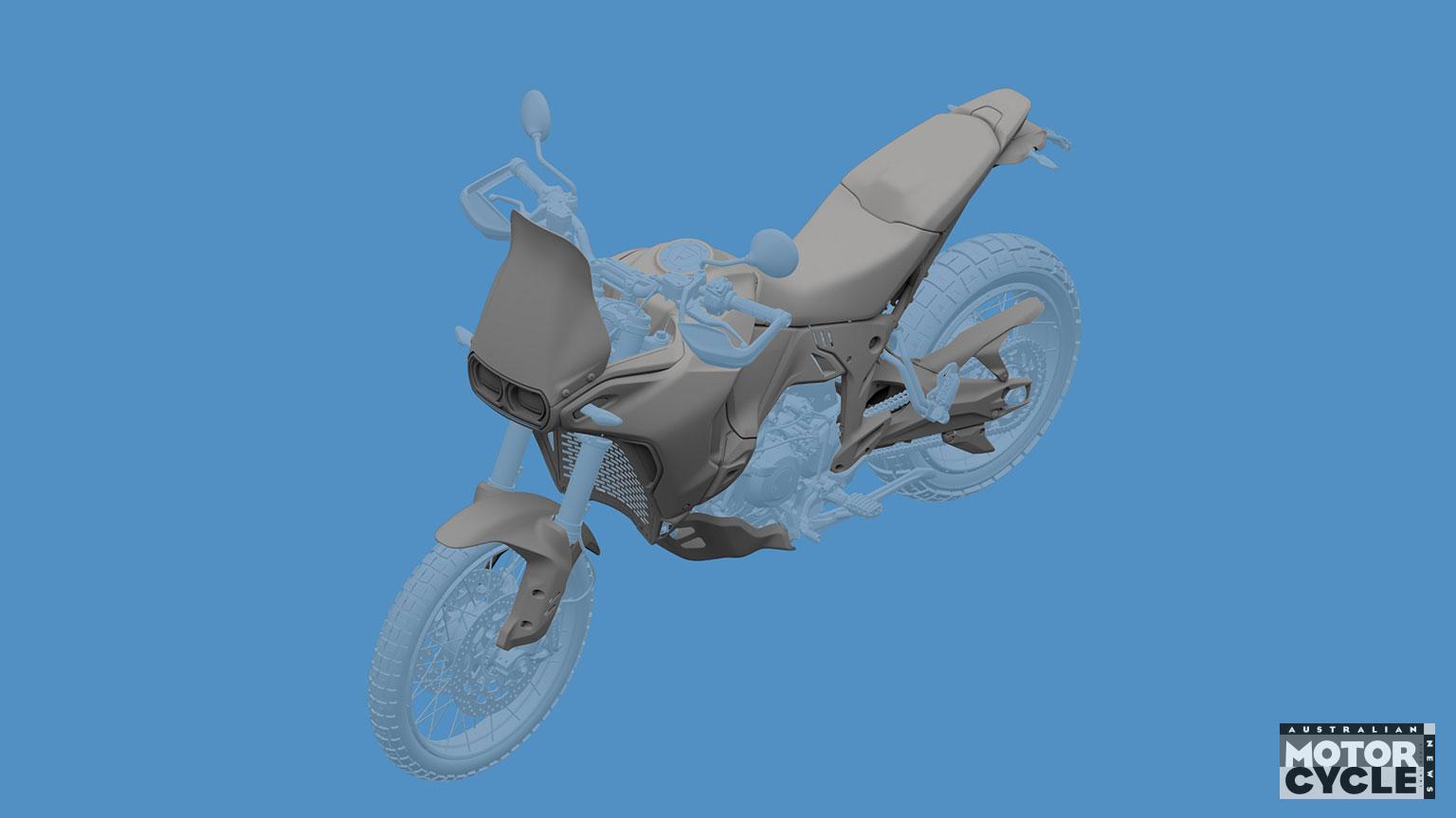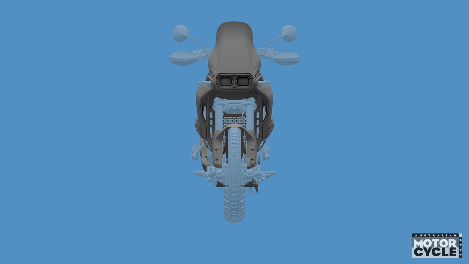 The DesertX V2 was another bike previewed at EICMA last year, shown wrapped in dazzle camo graphics and shorn of a few final details, and the new design registrations give a look at the finished version including those missing parts.