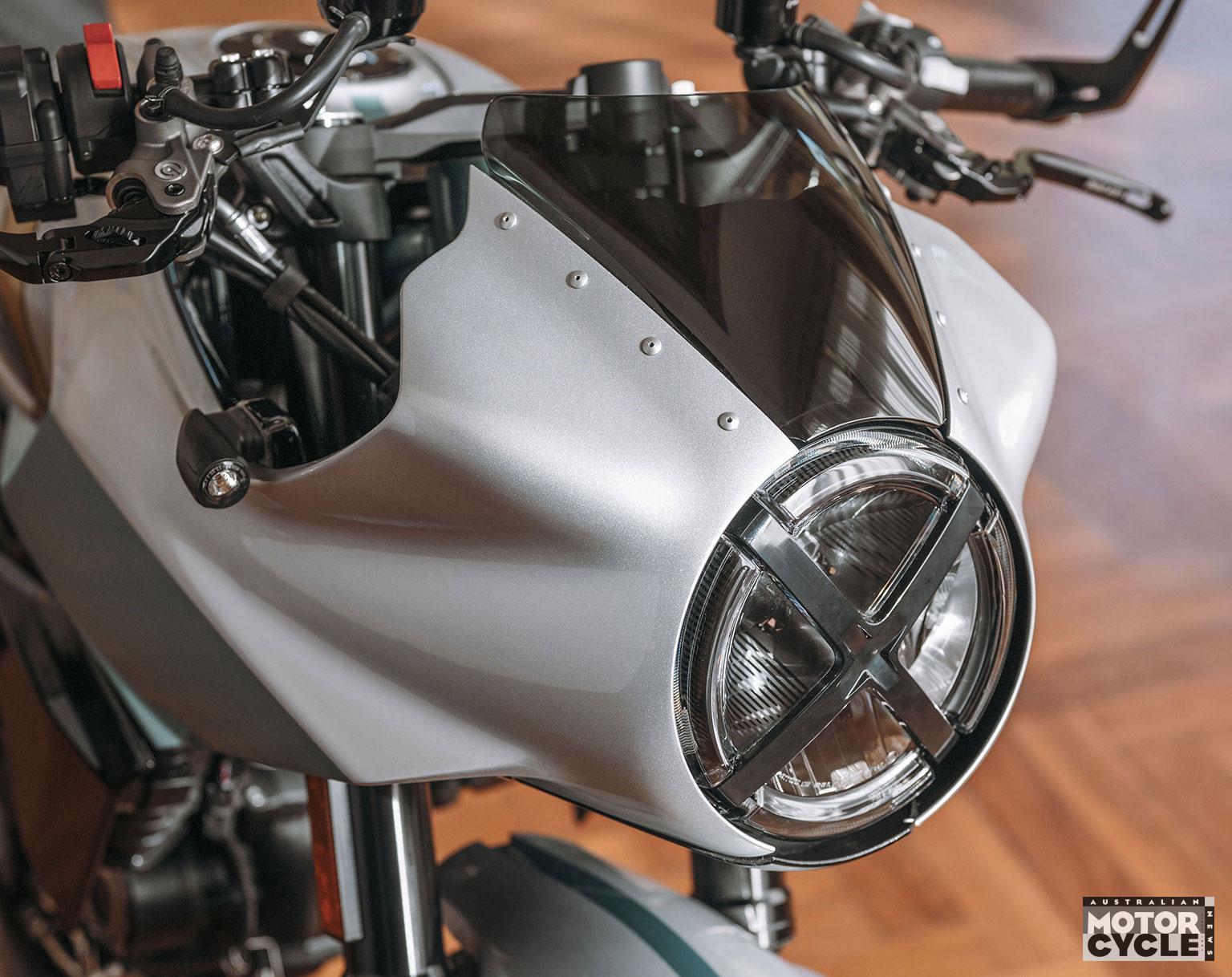 Billet aluminium components are part of the standard spec, including brake and clutch levers with oil reservoirs, footpegs and a Rizoma fuel cap.