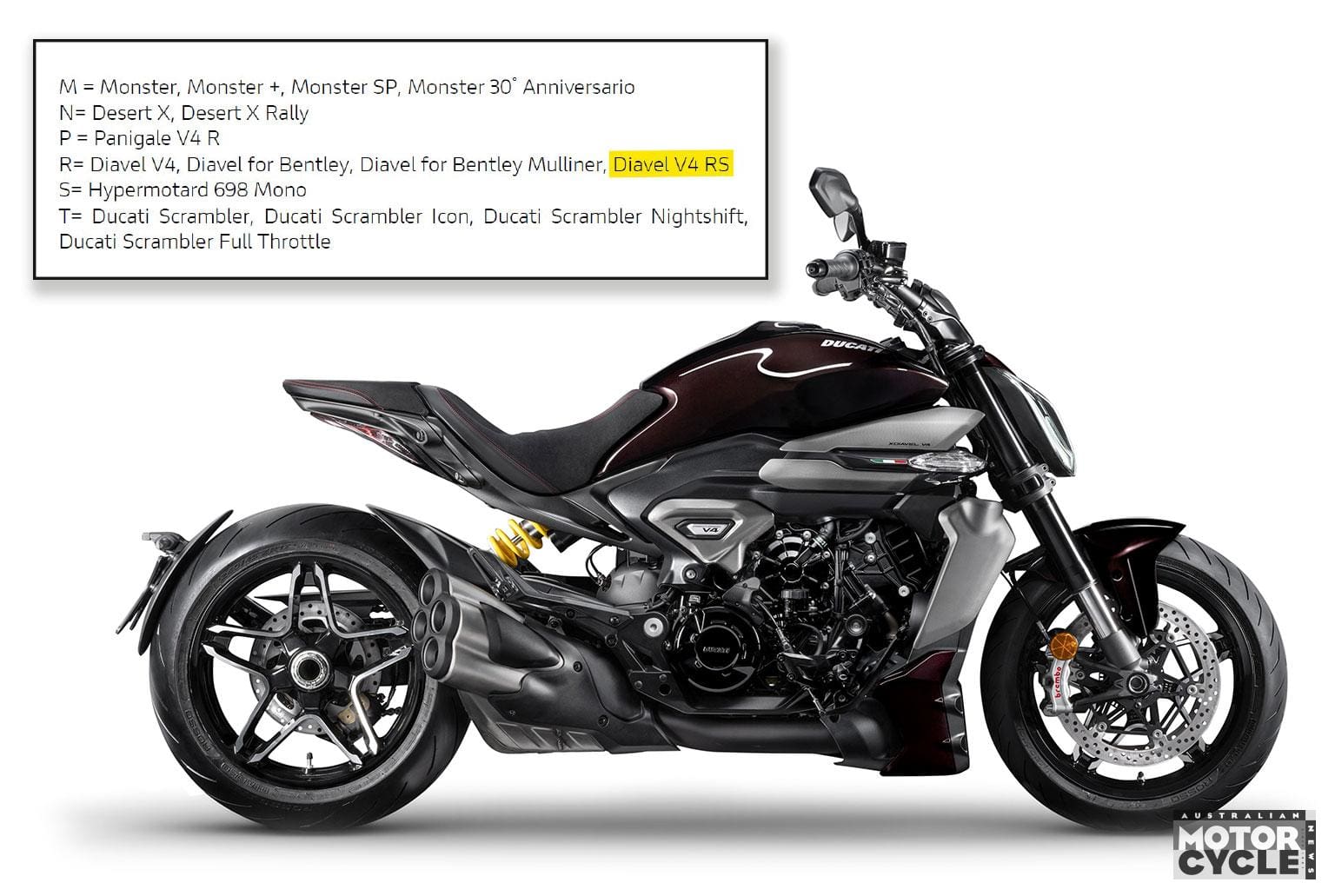 A slam-dunk reveal in the new VIN decoding document is the Diavel V4 RS – named alongside the existing Diavel V4 and Diavel for Bentley models for bikes getting the letter ‘R’ in the sixth position of their chassis number.