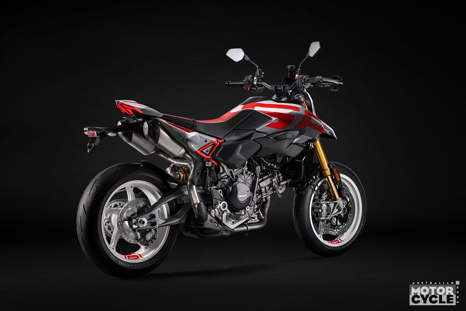 While it lacks Desmo and drops a few cubic centimetres compared to the Testastretta, the V2 engine has variable intake valve timing and boasts a claimed 120hp, up from 114hp for the old bike. It’s a lighter, more compact engine, too, helping bring the bike’s kerb weight down from 193kg to 180kg without fuel, while the SP version is lighter still at 177kg. That’s partly down to the engine itself, which is around 6kg lighter than the Testastretta, but also because the V2 is designed to be a completely structural part, doubling as the bike’s main frame. The swingarm – now a double-sider instead of the old single-sided design – mounts directly on the engine, while the steering head is fixed to a small aluminium monocoque that bolts to the cylinder heads and also houses the airbox. The seat subframe is still a tubular steel trellis to keep a visual tie to the old Hypermotard, which first debuted in concept form exactly 20 years ago in 2005 before reaching production in 2007.