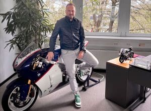 Markus-Flasch-with-2006-BMW-Oral-990cc-MotoGP-3-cyl-prototype-in-his-office