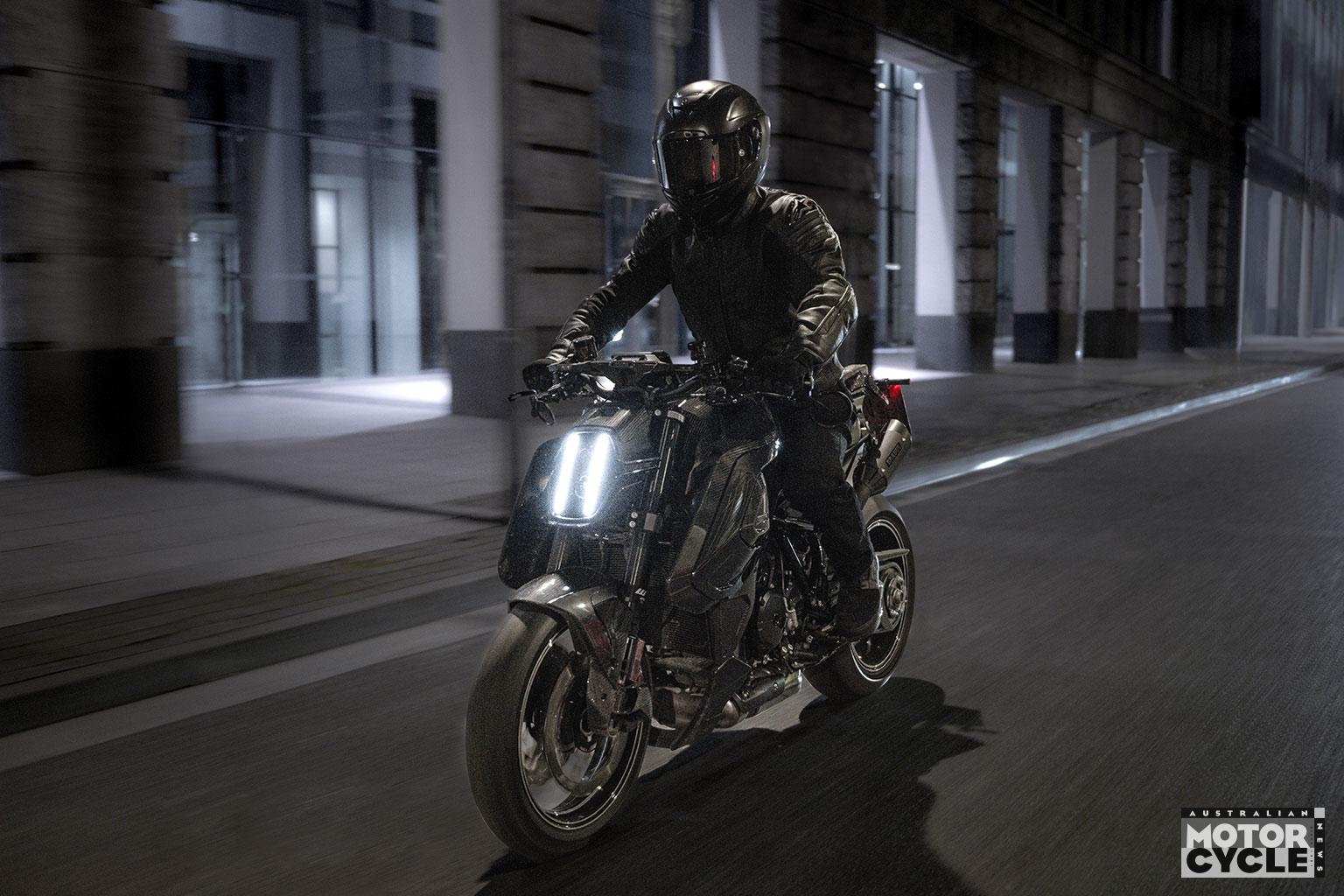 998cc inline-four, ~208hp, ultra-light carbon bodywork, extreme hyper-naked.