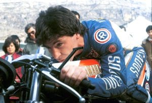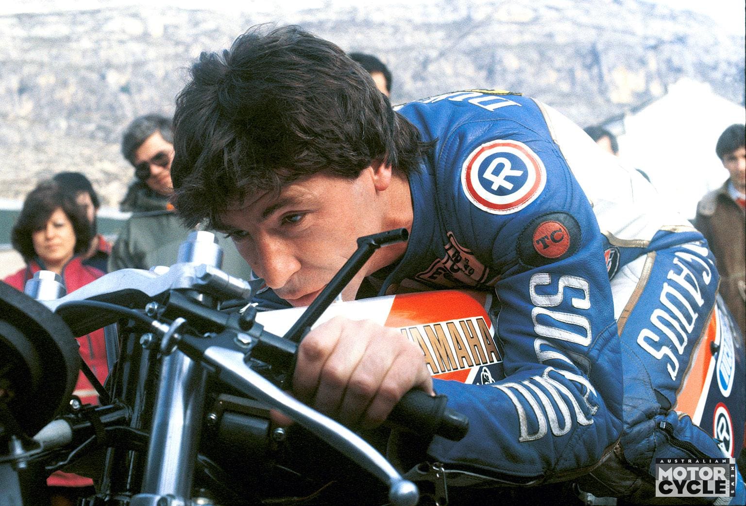 Angel-Nieto–Yamaha-250cc-sitting-position-chin-flat-on-tank–1983-AHERL-ARCHIVE
