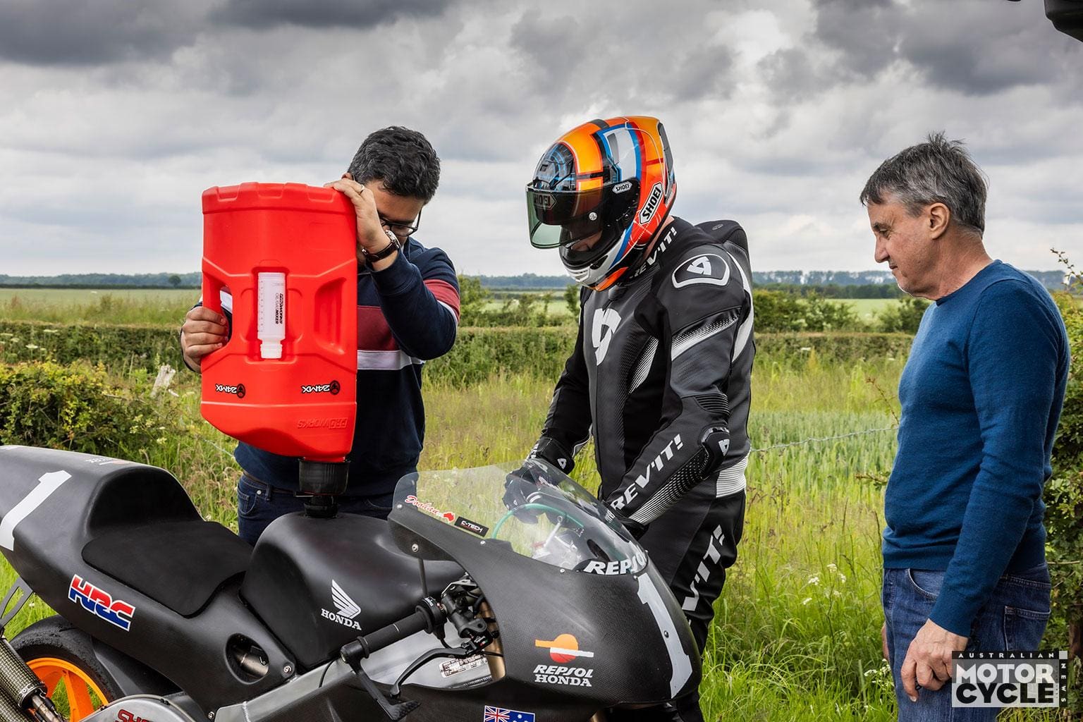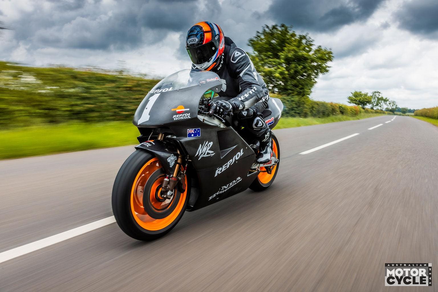 “It gives me shivers when it starts up,” grins Jamie, somewhat nervously. “It sounds angry, just like a proper GP bike, and that’s how it should be. Doohan used to say that the sound of his NSR warming up before a session was often enough to instil fear in him.”