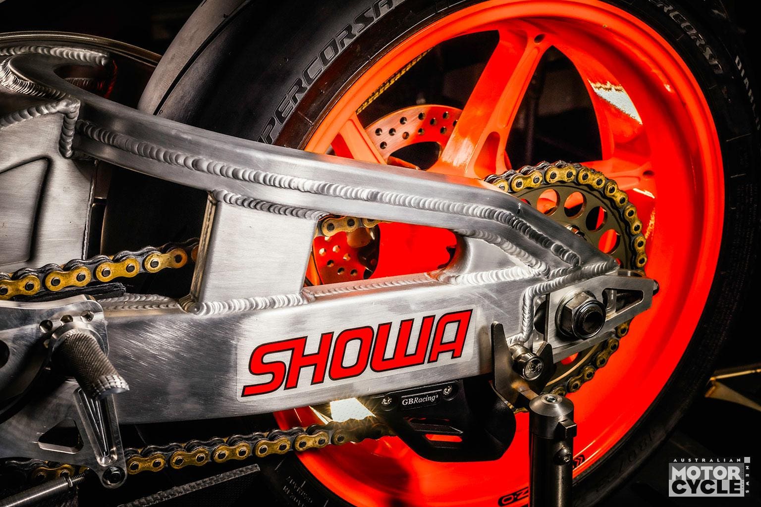 “The exhausts had to be right,” he says, pointing at the titanium spannies, exquisitely welded by Sean Ryde, dad of 2024 BSB champion Kyle. “The RG’s front cylinders sit at a markedly different angle to the NSR’s, so the pipes had to be designed for maximum performance as well as mimicking the length and look of the Honda’s. If we hadn’t got it right, it would have really bugged me.”