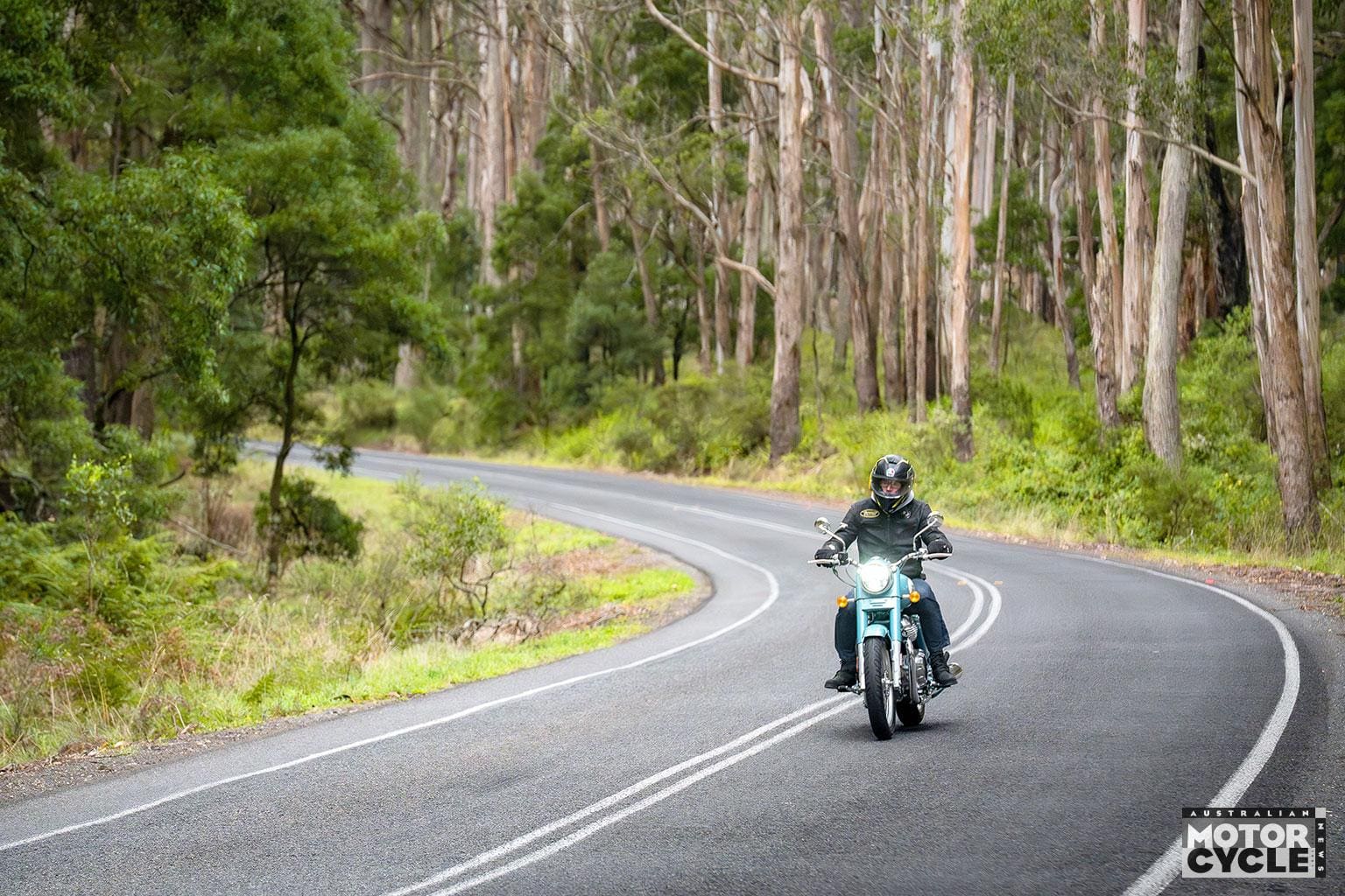 The Classic 650 tracked well around a 100km/h sweeper. It hit a large bump mid-corner but while the rear suspension was compressed there was no wallowing. Cranked over in a series of tight turns it didn’t feel like anything was going to touch down in a hurry. Brakes are adequate for the design brief of a cruiser.