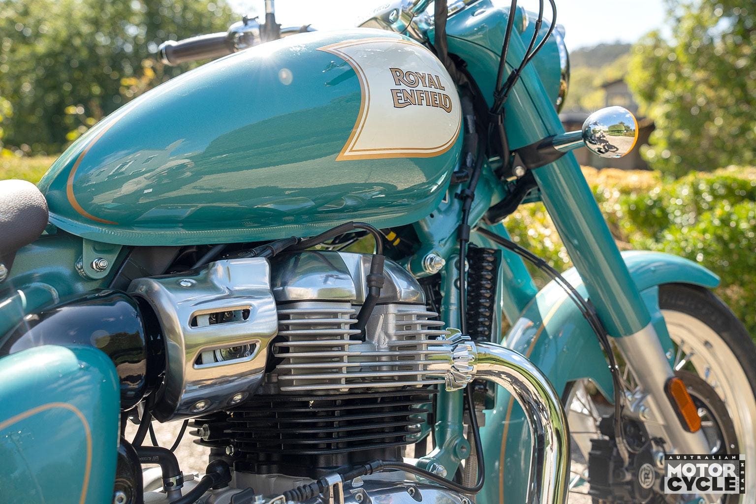 The three paint schemes available hark back to the classic era: Vallen Red, Teal Green and Black Chrome. The most extreme of these is the Teal Green, which Royal Enfield says has copped a lot of interest from potential buyers. My preference was the Black Chrome.