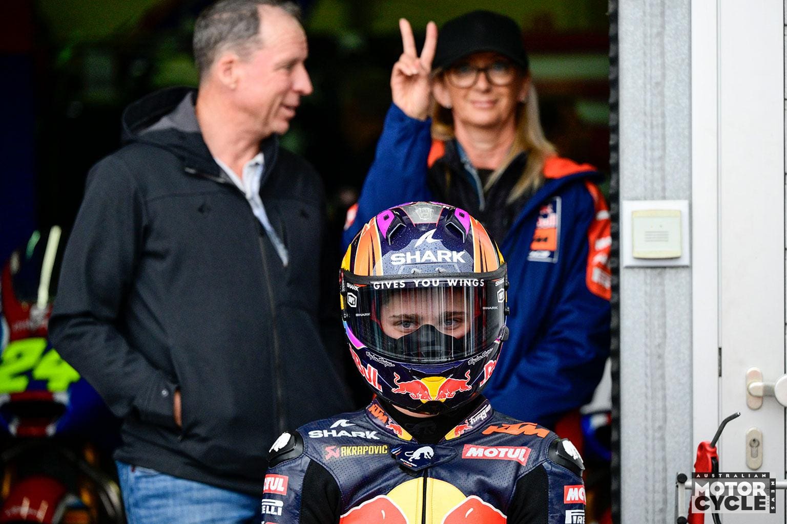 “Mum and Dad were in Australia; I was there with my mate. It was training, you see. It was a tricky time, but I had the best people around me, and at all times I had my mate Chubby and his family looking after me. I had a lot of help from Red Bull (his Moto3 team) through the APC, the Performance Centre.