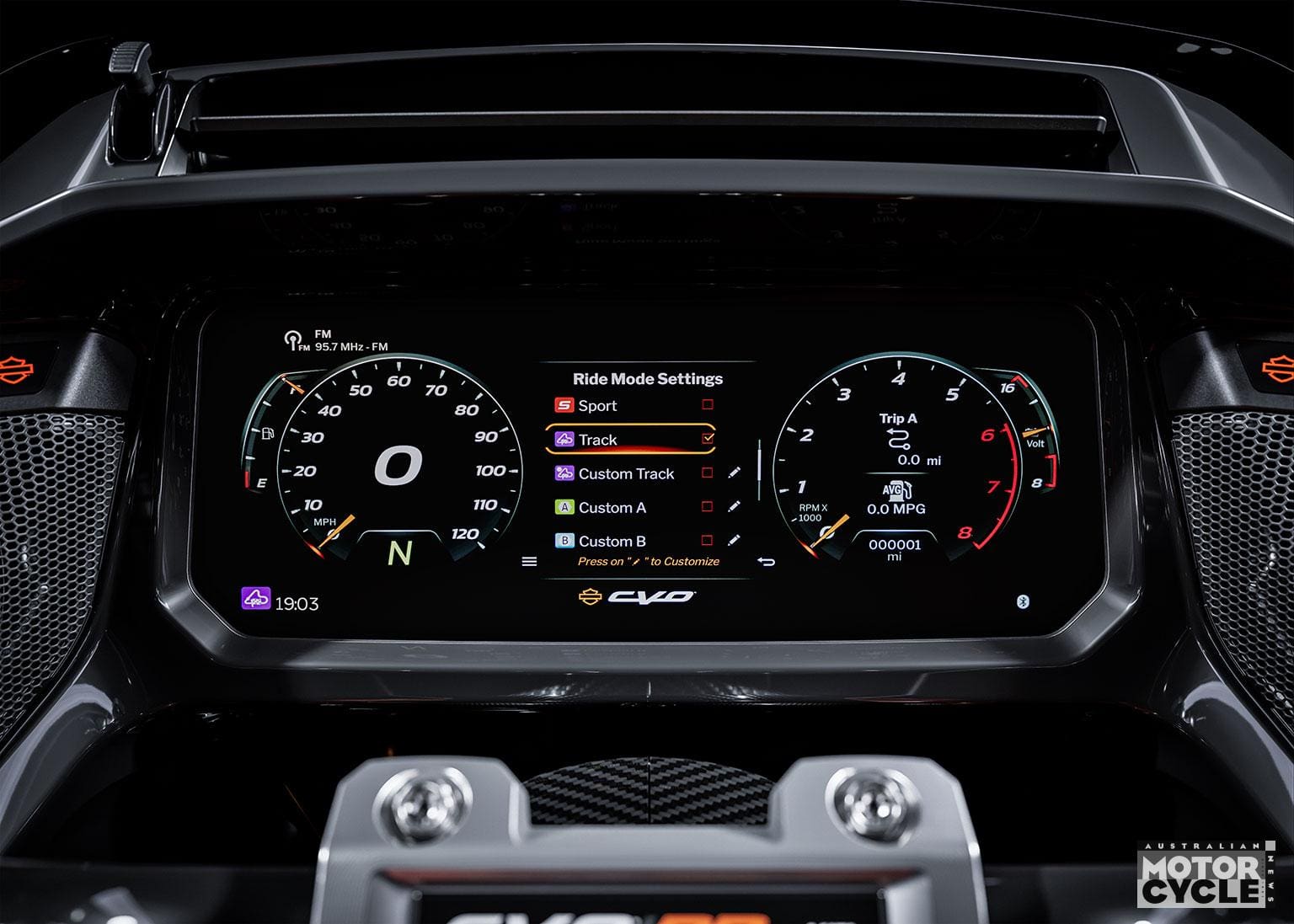 A CVO Road Glide of any description has to have cool gadgets, and the RR brings some new tricks to the table including dedicated racetrack electronics:
