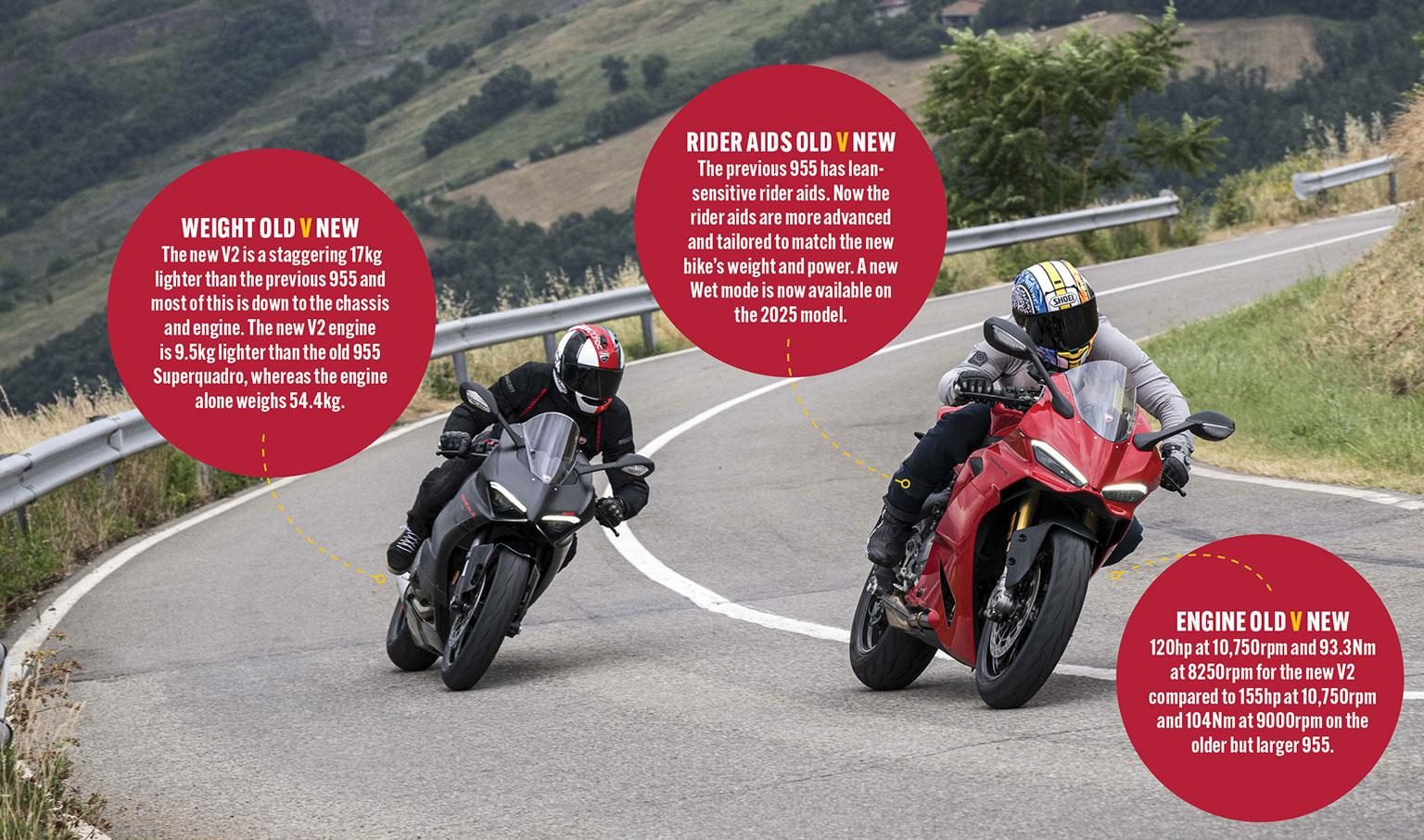 Ducati’s 2025 Panigale V2 S is 17kg lighter than the previous 955, but the old bike has 35hp more – which will come out on top?
