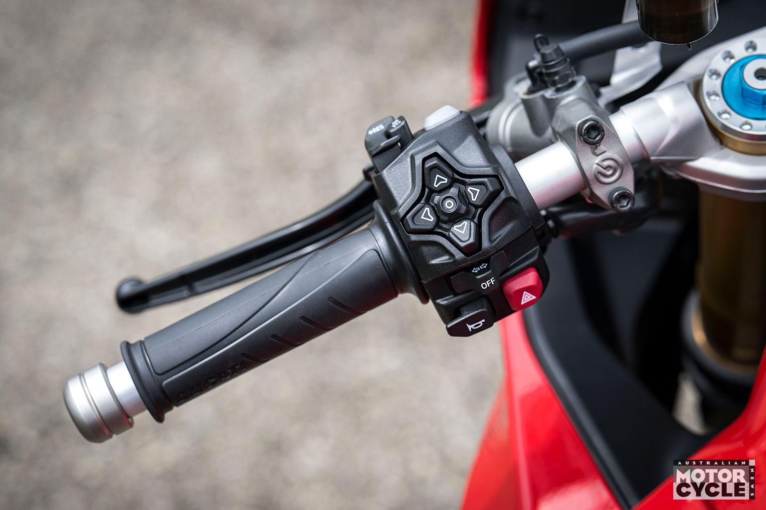 Switching to the new V2 makes life feel very different: it’s newer, with much clearer TFT clocks and swish switchgear, which was always going to be the case. The ‘bars are higher, the bodywork is larger, the pegs are lower and the seat is a fraction higher and softer. There are more concessions to the everyday. The V2 still feels like a sportsbike but a sportsbike for the road, whereas the older Panigale comes at you like a race machine adapted for road use.