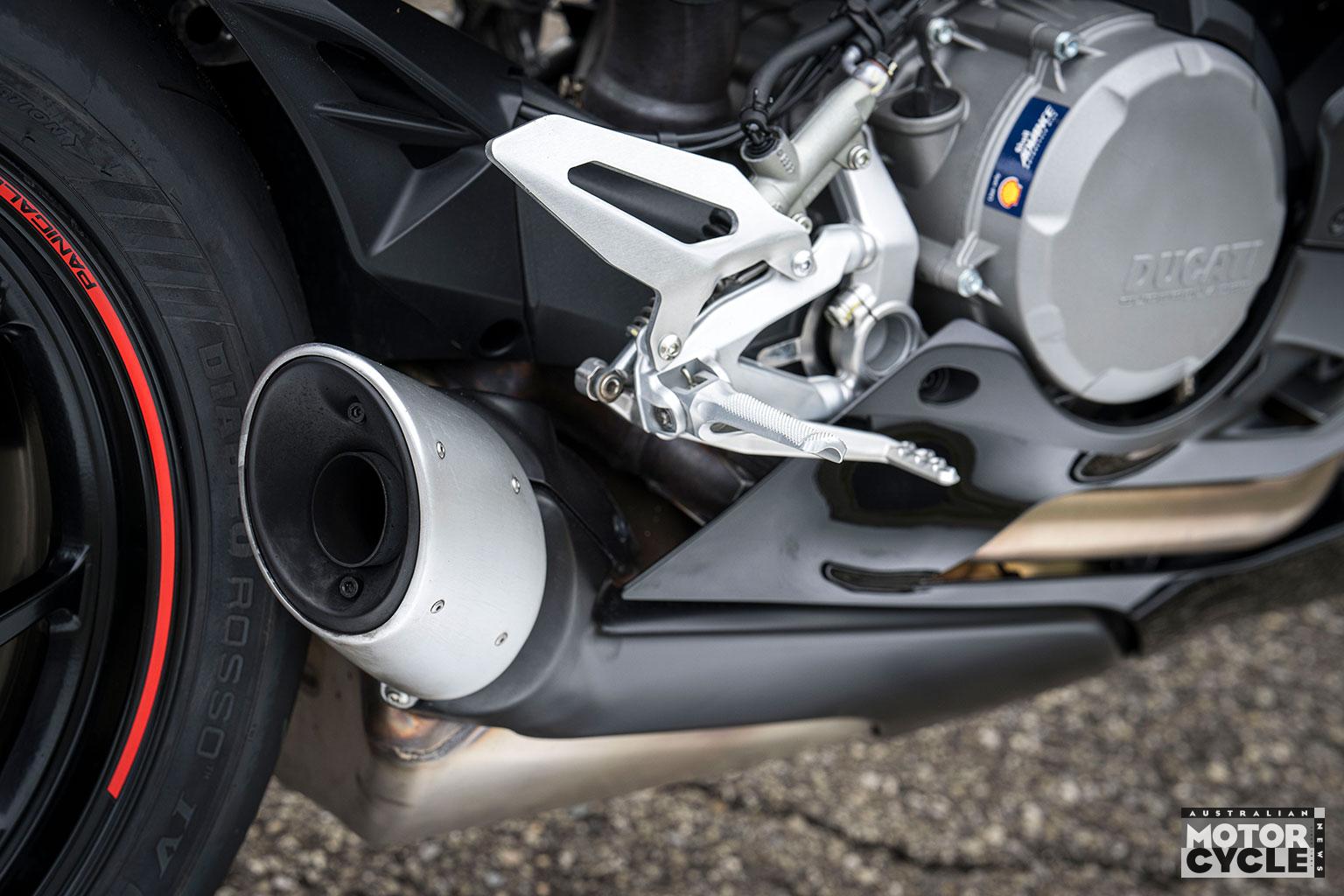 WHILE WE were in Italy, Ducati invited us to the Misano circuit to test the new V2 S fitted with the full race exhaust by Termignoni. This race-only exhaust pushes peak power to 126hp, six more than standard, and drops weight by another 4.5kg, which is a huge saving. More power and less weight is obviously advantageous but, just between you and me, the biggest advantage of all is its looks and sound. Fitted with the Termi, it looks full factory and sounds amazing – if not exactly road legal.