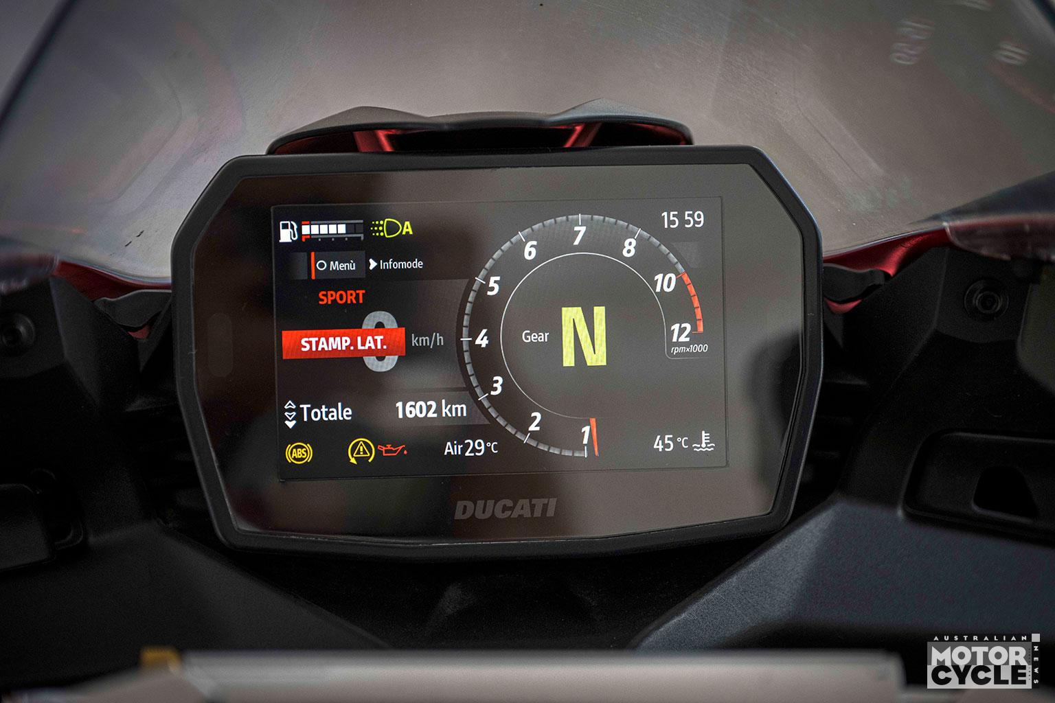 Rider aids: Riding modes (Race, Sport, Road), Power modes, Bosch cornering, ABS, Ducati Traction Control, Ducati Wheelie Control, Engine Brake Control.