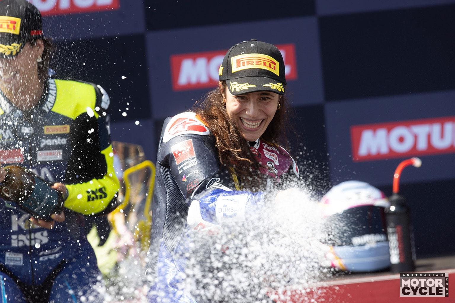 Pakita Ruiz (PR46+1 Racing Team) was sixth awhile a gutsy ride from Tayla Relph (TAYCO Motorsports) saw her seventh, after some good work from the medics and physios to help her with her broken fingers and tendon issues.