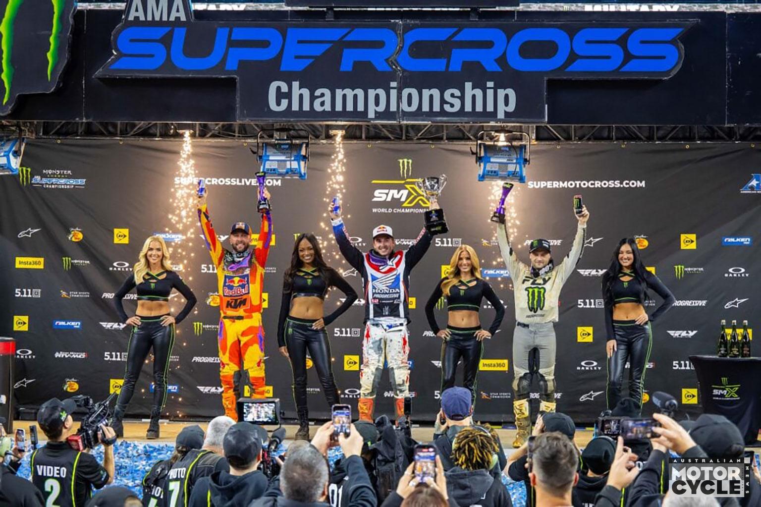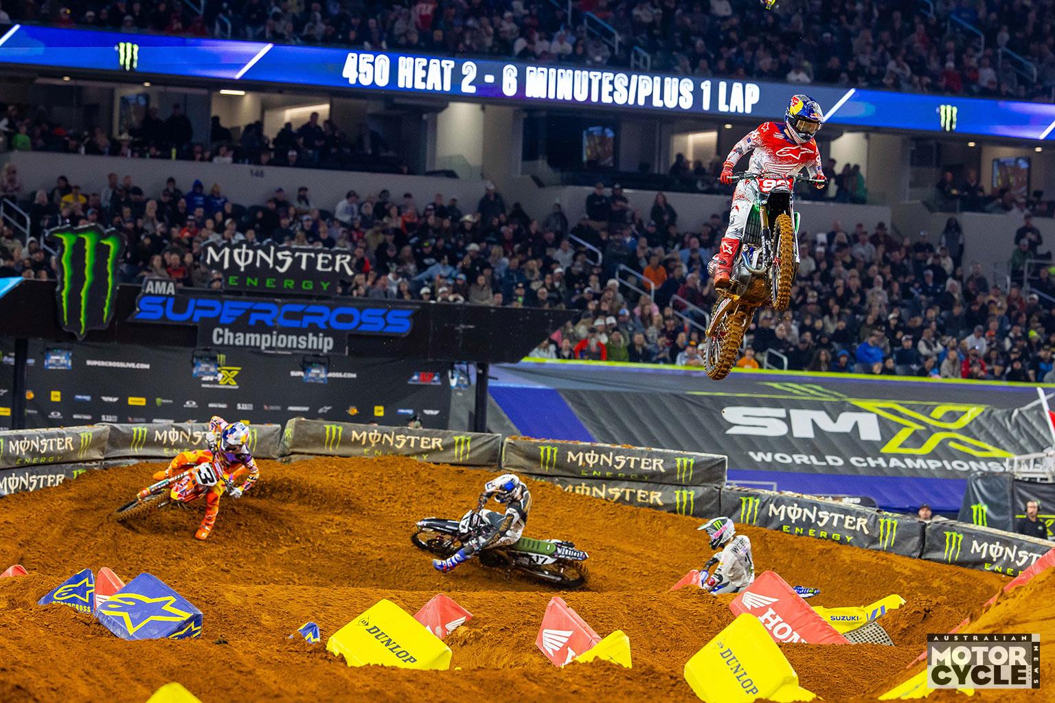 That advantage was cut when riders behind him jumped while a red-cross flag was displayed, shrinking the margin and increasing the pressure late. Lawrence held on to the chequered flag to seal the maiden premier-class win of his career. On the way to his way to his first win, Lawrence set the fastest time in the 450SX main event – a first for the Australian. It also came at the same venue where he scored his first 250SX win back in 2022. The result keeps Lawrence atop the 450SX standings, extending his advantage over Eli Tomac from one point to four heading to Daytona.