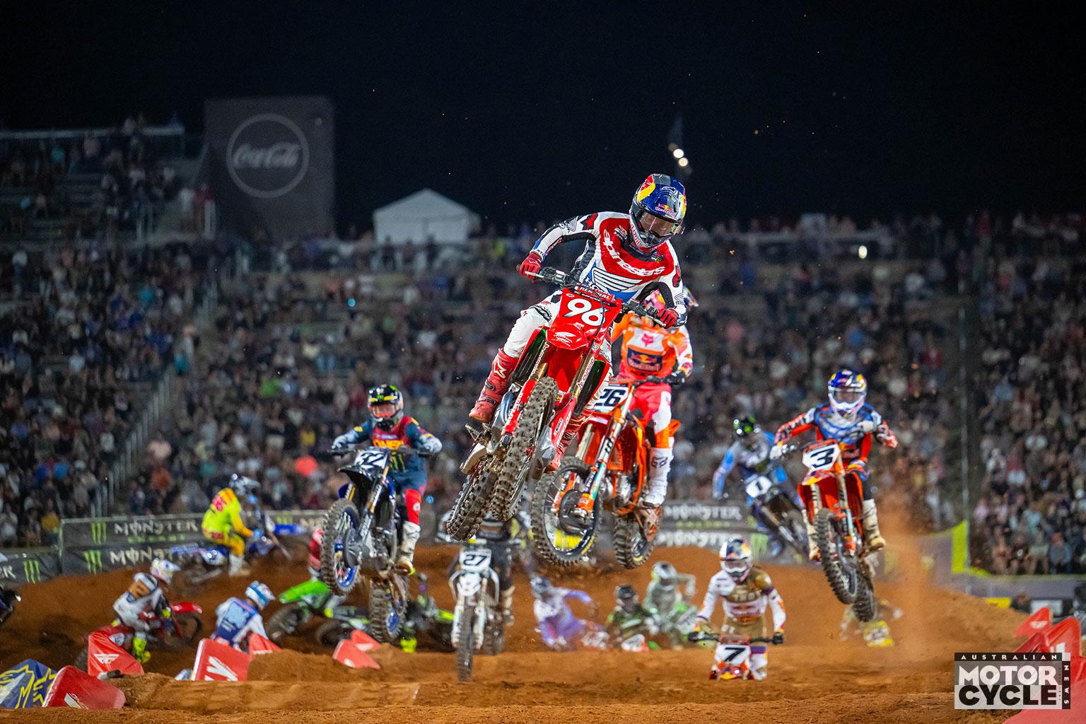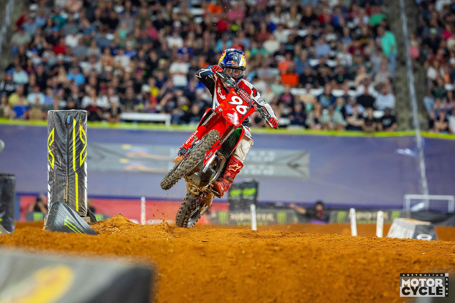 When it came time for the Birmingham 450SX main event, the Australian executed his plan perfectly. Launching inside the top three, Lawrence moved into the lead in the opening corners and controlled the race from the front, showing sharper intensity early and steadily building a buffer that he maintained to the finish. Lawrence ultimately took the win by 2.4 seconds over Ken Roczen, while Quad Lock Honda’s Shane McElrath and Christian Craig finished 12th and 17th respectively.