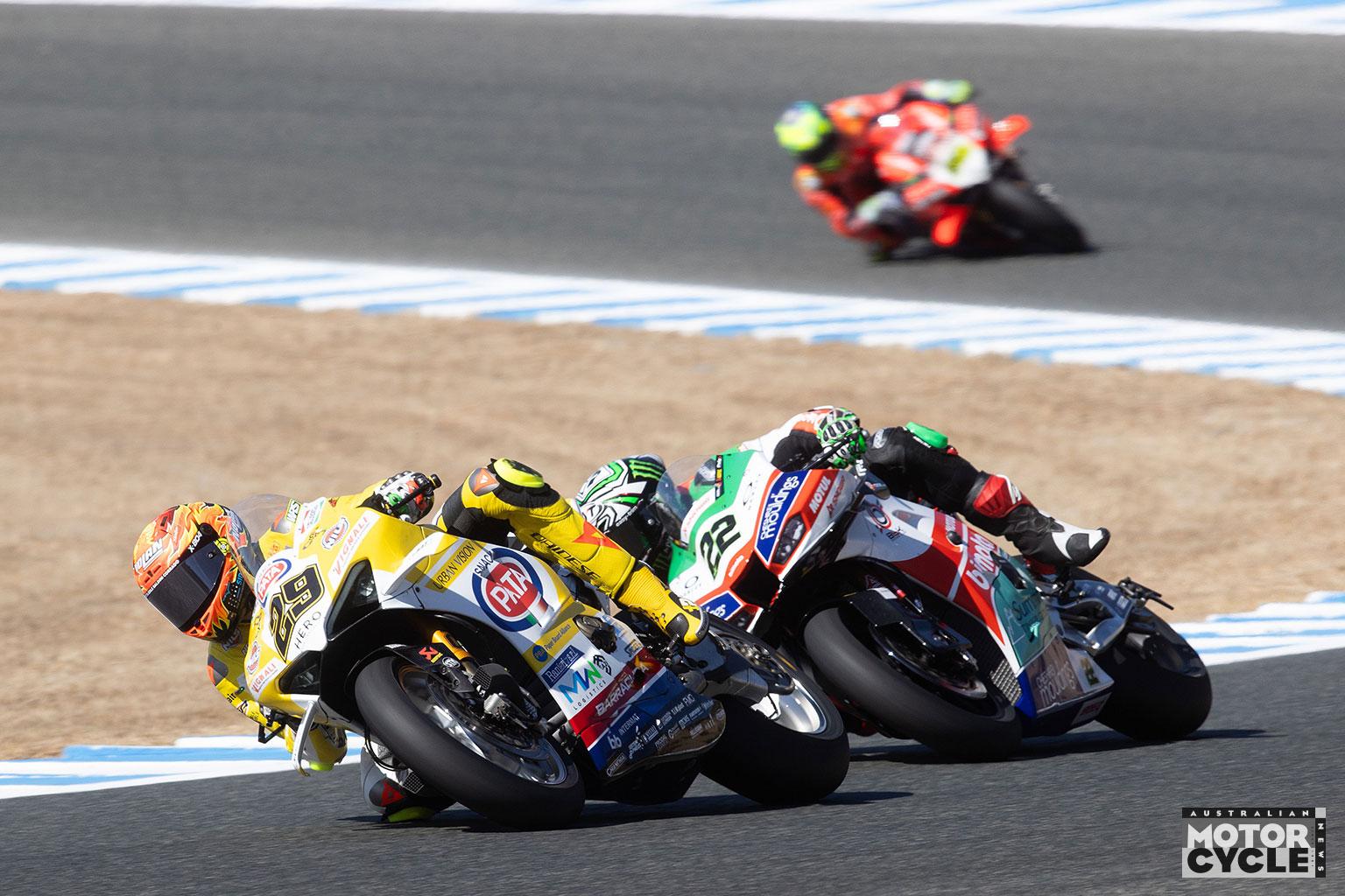 It took some time for the lead BMW rider to shake loose the yellow Ducati, and by then Nicolo was stretching out his leading advantage. He would win from Toprak by 3.7 seconds.