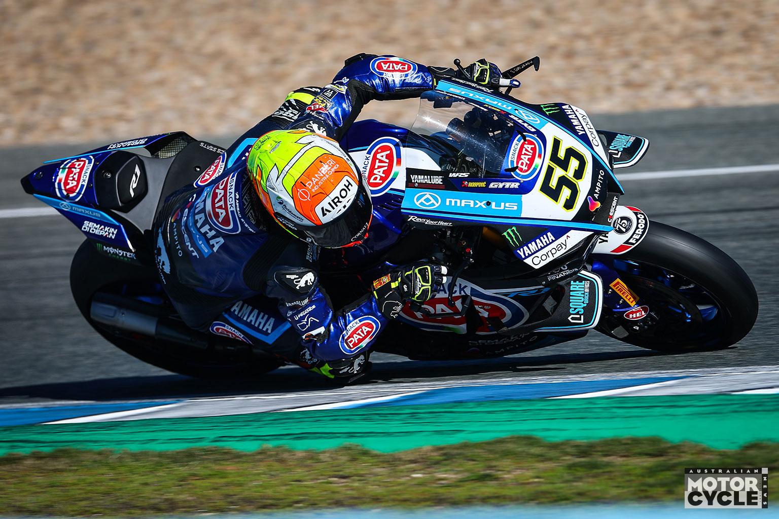 Yamaha once again filled the sharp end as Vierge underlined a smooth transition from Honda with a 1’38.058 for second, just 0.233s shy of Lowes. Andrea Locatelli was the second R1 in the mix with a 1’38.134, a mere four thousandths slower than van der Mark, after a productive program of chassis geometry tweaks and swingarm updates. The Italian also completed his first test with new crew chief Giulio Nava, fresh from Aruba.it Racing–Ducati, adding another thread to Yamaha’s evolving technical picture. Satellite runner Stefano Manzi matched his Day 1 standing with seventh overall on 1’38.606 as he continues his adaption to the R1.