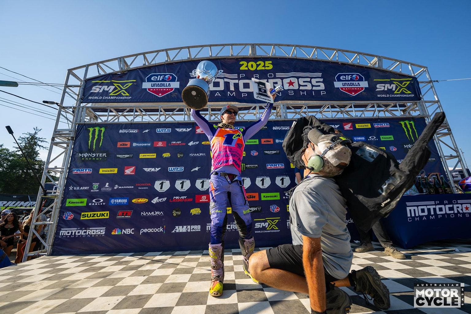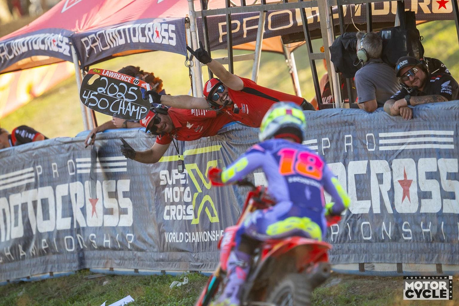 “All around it was a great weekend, and I’m super happy with the result,” Lawrence said. “Going 1-1 on the day and finally wrapping up the championship feels amazing. HJ put a lot of pressure on me in that second moto, so it definitely wasn’t easy, but I’m really thankful for my team and everyone who’s helped me get to this point. Huge thanks to my family, my girlfriend, my agents—everyone who supports me and makes it possible for me to line up each weekend. I’m just super grateful and really happy right now.”