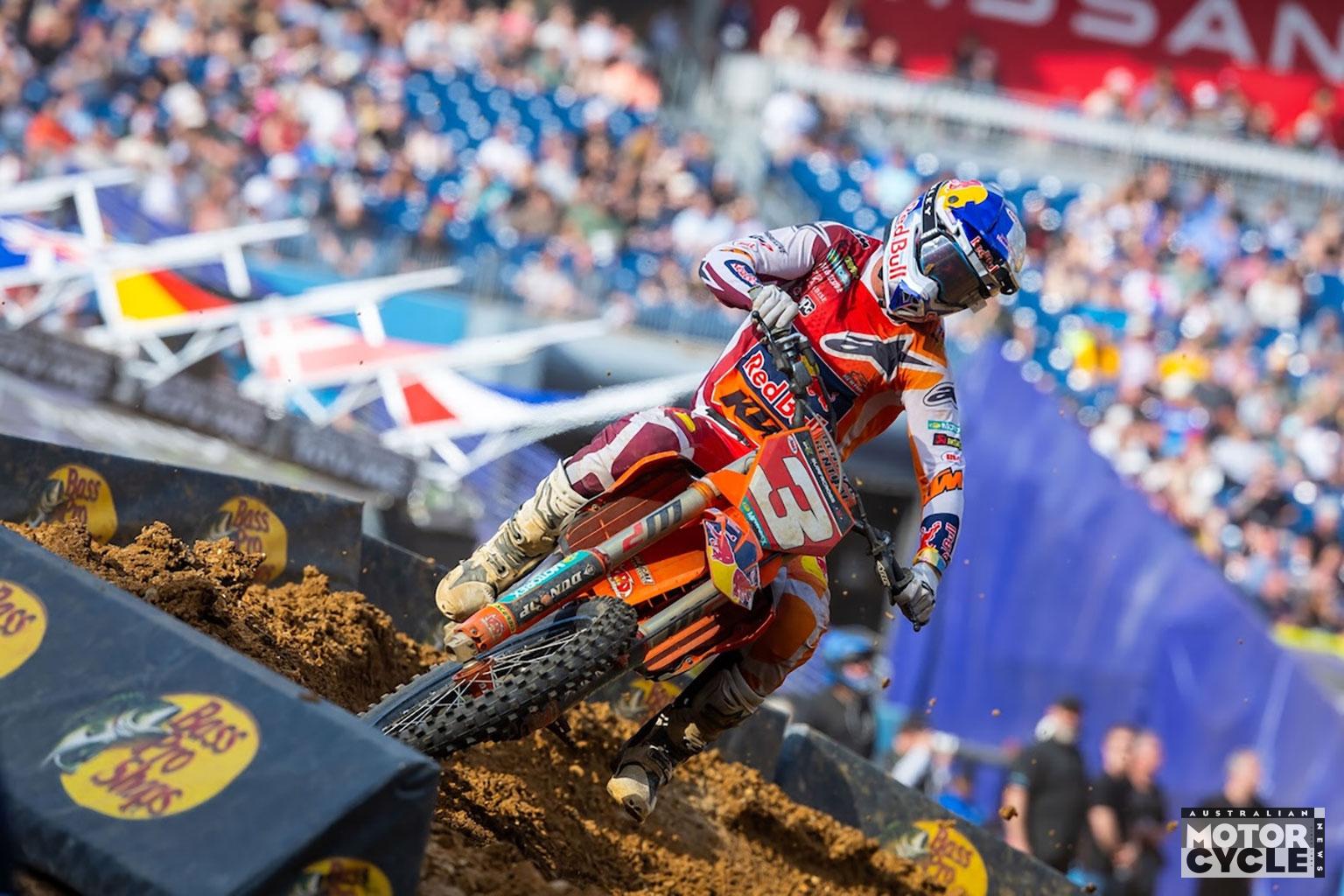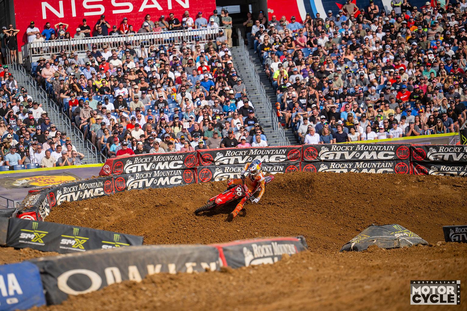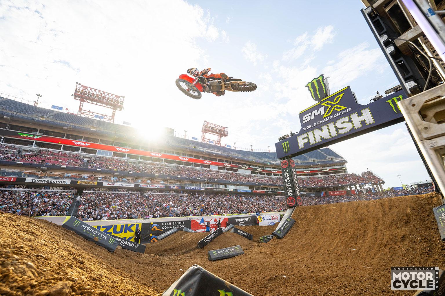 The Monster Energy AMA Supercross Championship made its anticipated return to “Music City” for Round 13 of the 2026 Monster Energy SMX World Championship, as a packed Nissan Stadium hosted the latest twist in a three-way 450SMX fight that has been among the tightest the class has seen. When it was all said and done, Honda HRC Progressive’s Hunter Lawrence produced a decisive performance to take ownership of the championship momentum, winning the Nashville Main Event and moving into outright possession of the points lead with four races remaining.