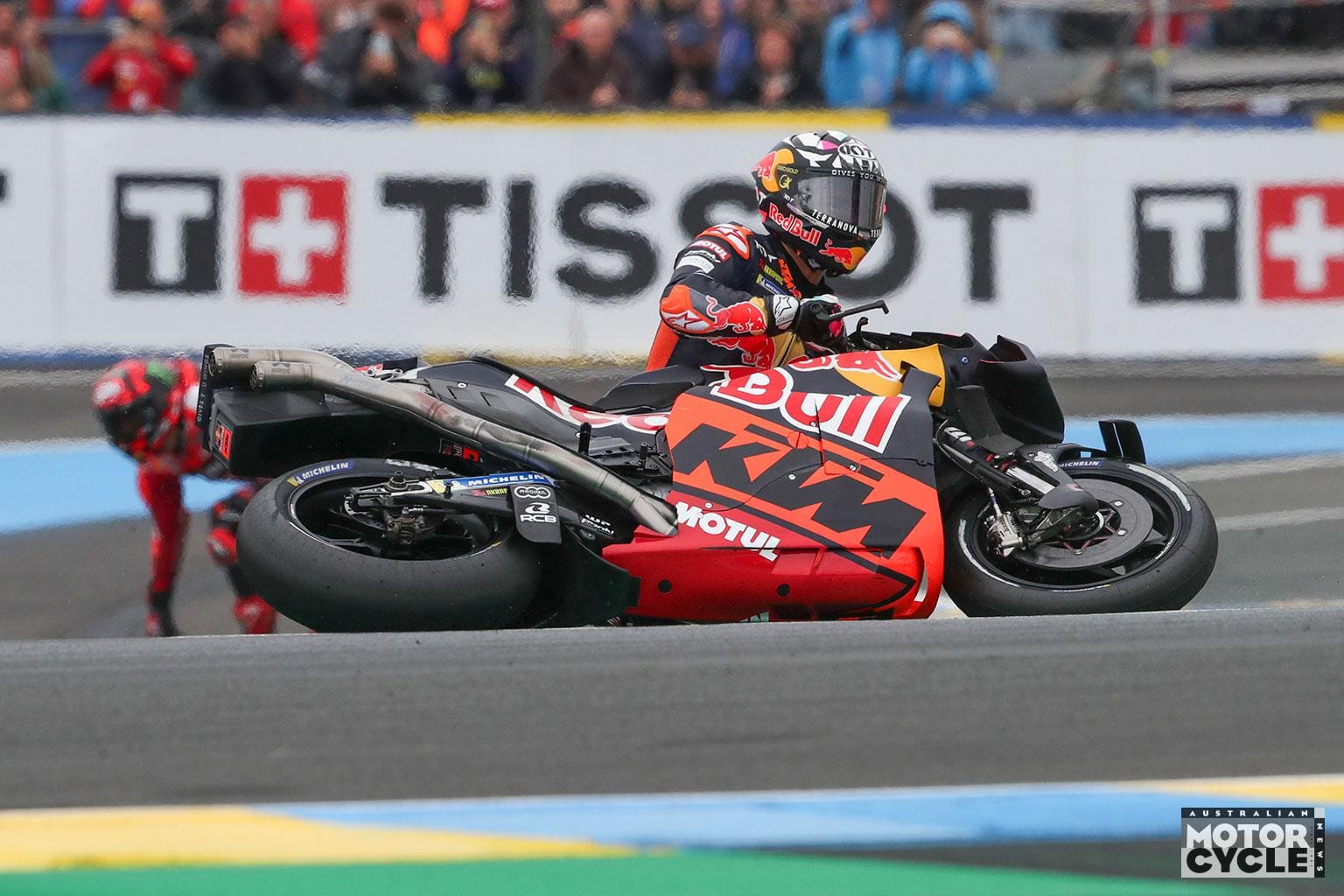 Enea Bastianini described the French Grand Prix as a “crazy race” after serving four long lap penalties, crashing twice, swapping bikes, and earning an additional penalty for the next round. He eventually crossed the line in 13th, scoring a hard-earned 3 points.