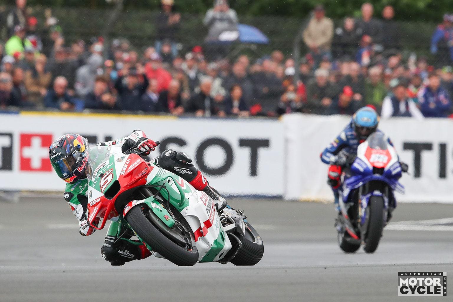 True to recent form, Zarco seized his chance to make history with both hands. The 34-year-old was undeterred that the damp Bugatti track was drying before the rerun race. Knowing that rain was still forecast to return after a delayed race start, he chose wets then persevered in the early laps when it appeared the slicks – which 14 of the grid had changed to prior to the warm-up lap – were the better option.
