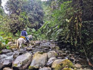 This is not where we expected to be tonight. For the last few days, we had been staying in a beautiful 100-year-old Colombian coffee farm owned by a friend. After a few days, he put us in touch with his cousin, Julian. The cousins and their families own a mining company and two mountains connected by a river. Julian met us in a nearby town, took us out for breakfast and then for a ride on his private land. As we were about to leave for our next destination, Julian suggested that instead of going back on ourselves and around to get to our next town (roughly four hours), he could open up his mining ferry for us to get across the river. Once over, he has a private road leading up and over his mountain that we could use.