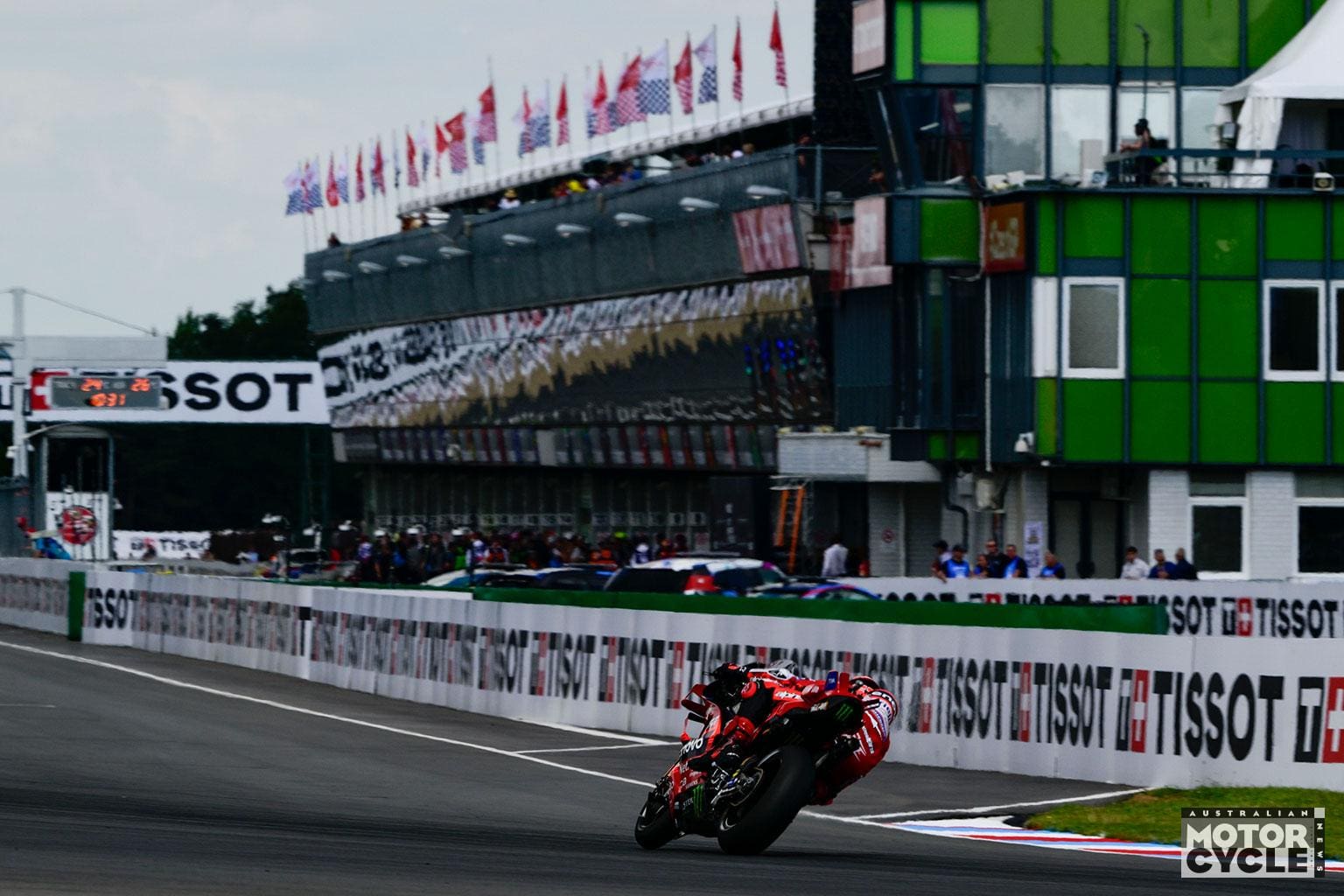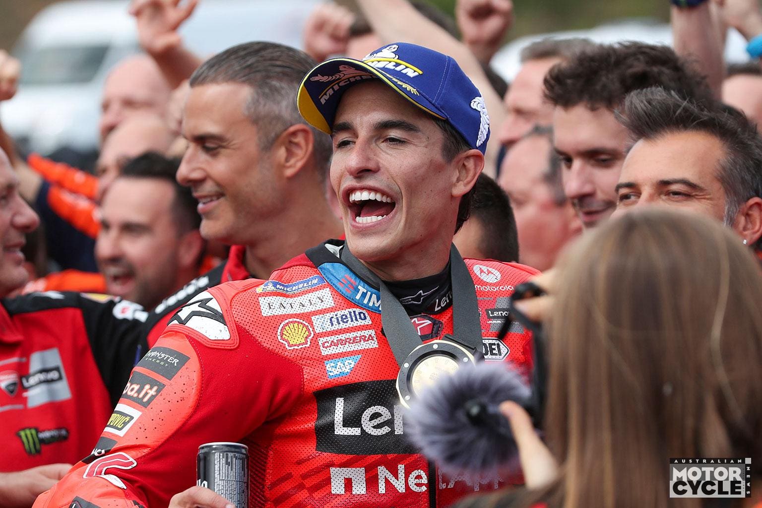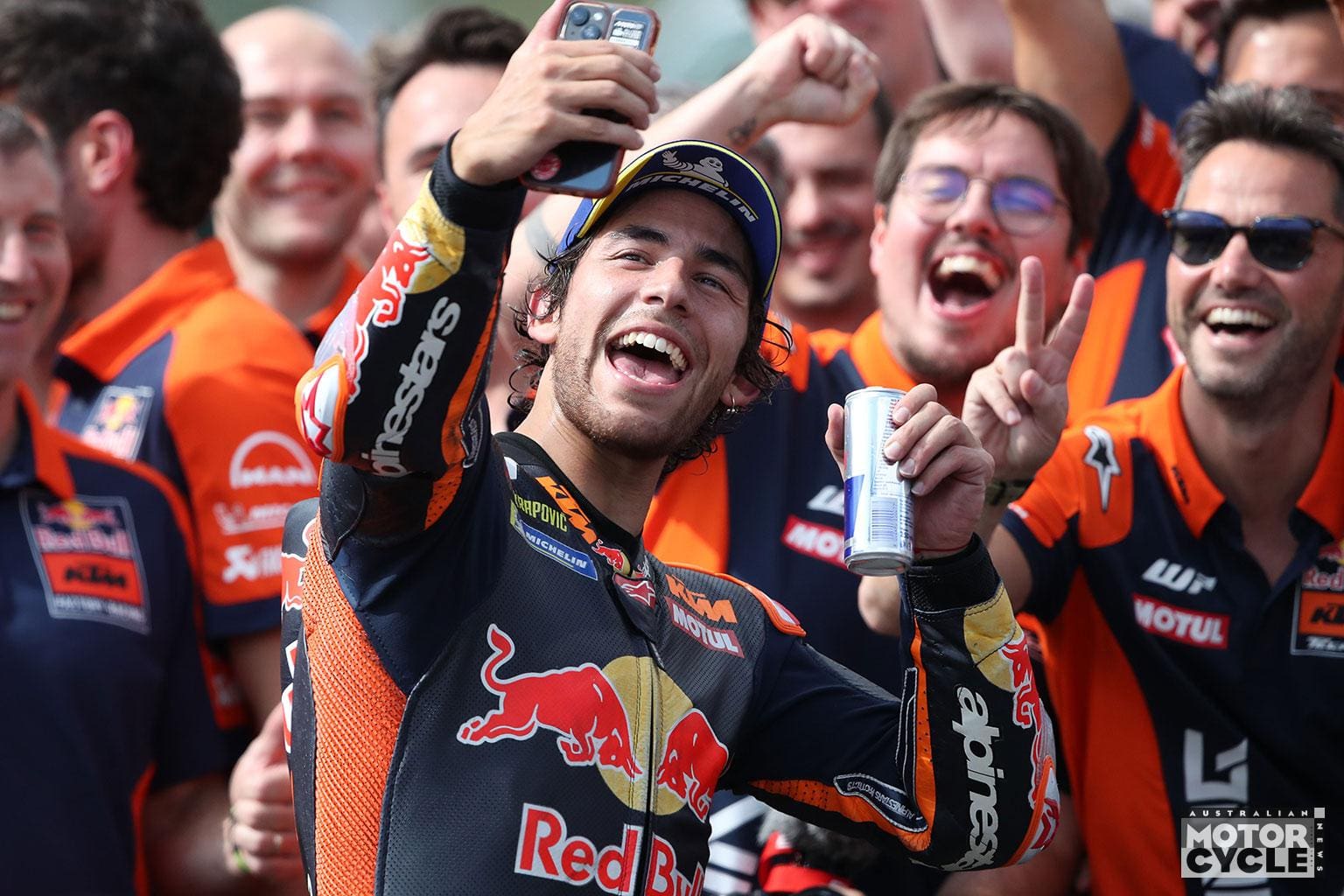 On Lap 9, whatever warning lights Marc had seen on his dash must have dissipated, and he sliced ruthlessly past Acosta on the change of direction through the esses, lighting up his rear tyre through Turn 10 as he attempted to break clear of the KTM man once again. Acosta threw everything at the final lap, sliding his KTM into corners in a breathtaking all-or-nothing display, but Marc’s pace was inexorable.