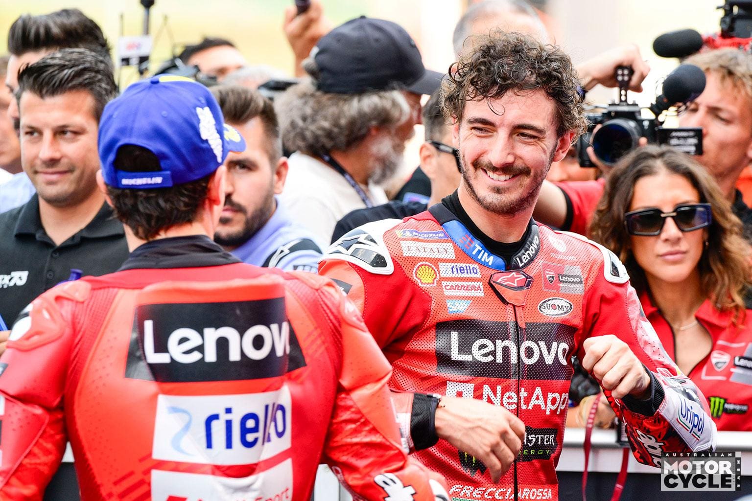 Marc takes another incredible pole position but Bagnaia looks happy and reinvigorated at his home round and looks set to push the championship leader hard in both the sprint and full length races.