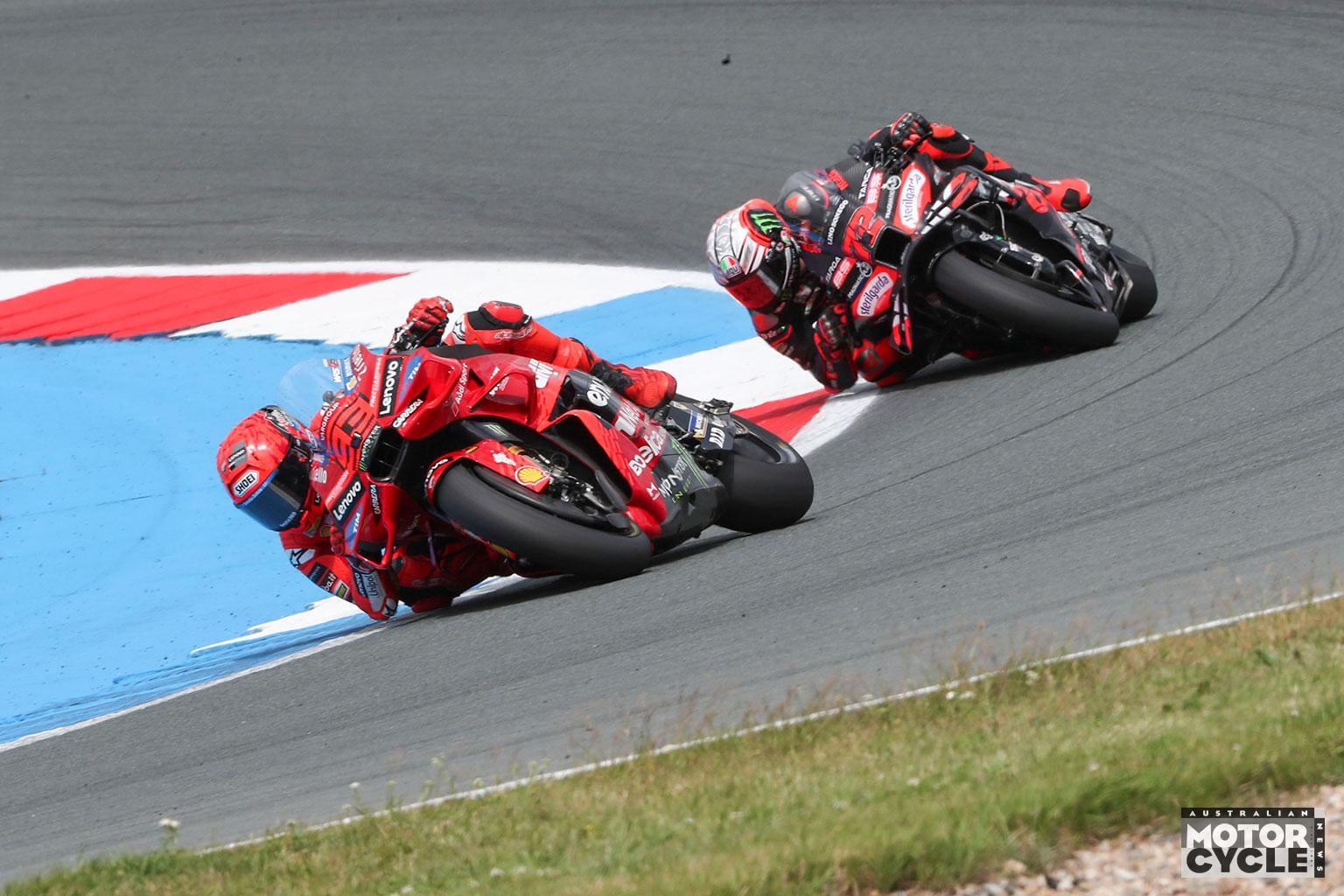 On the last lap, Marquez asserted his superiority to pull a small gap on Bezzecchi and hold a 0.6s advantage across the line. The Dutch TT victory marked his third win in a row—something he hadn’t managed since 2019—and elevated him into the record books alongside Agostini. Bezzecchi’s valiant second is still an excellent result for Aprilia, perhaps giving Jorge Martin a bit more fuel for thought.