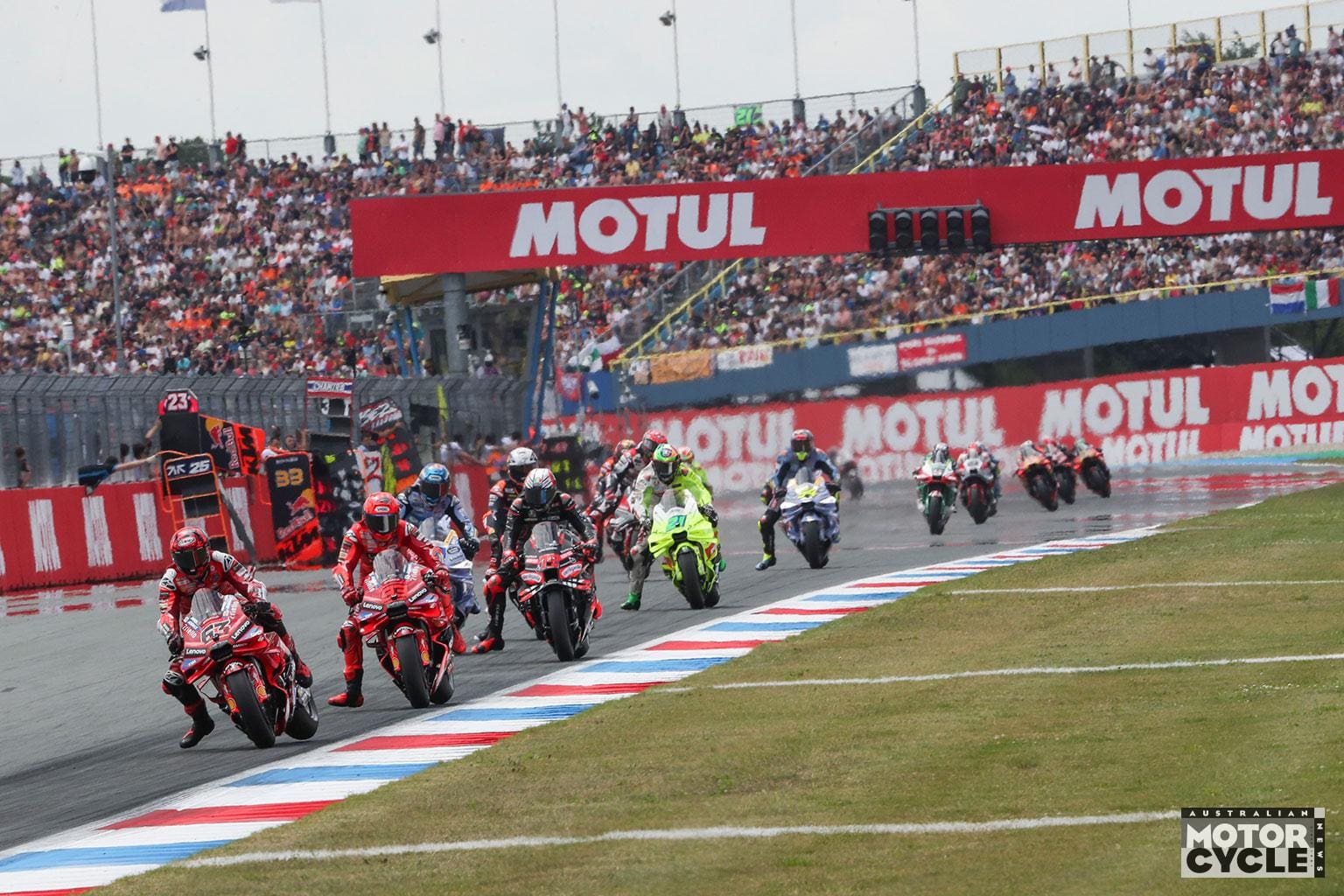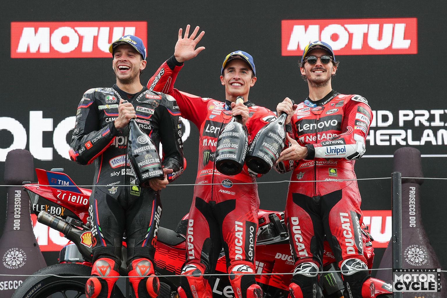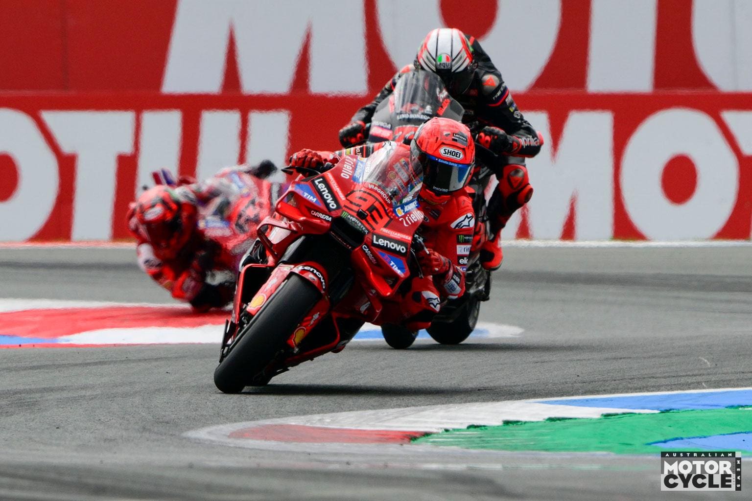 Marc Márquez delivered a strategic and commanding victory at the Dutch TT, equaling Giacomo Agostini’s Premier Class win record of 68 victories, while cementing his control of the 2025 title race. Francesco Bagnaia got the holeshot from the centre of the front row, leading a Ducati sweep into Turn 1 as Marc Márquez tried a bold move around the outside of his brother Alex. Alex, however, held firm, while Franco Morbidelli had a nervy moment and both Ai Ogura and Miguel Oliveira found themselves off at Turn 5. Marco Bezzecchi wasted no time clearing Fabio Quartararo into the chicane as the order began to settle.